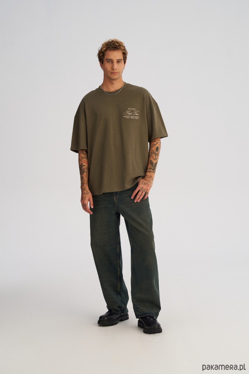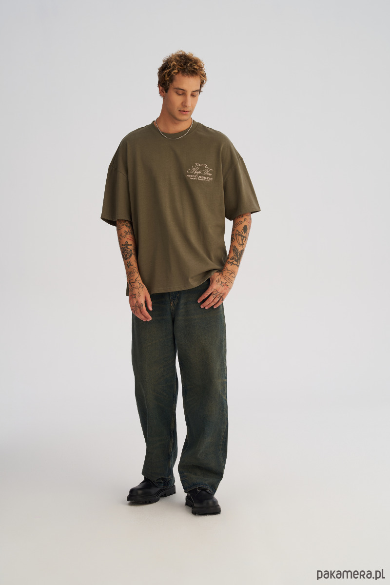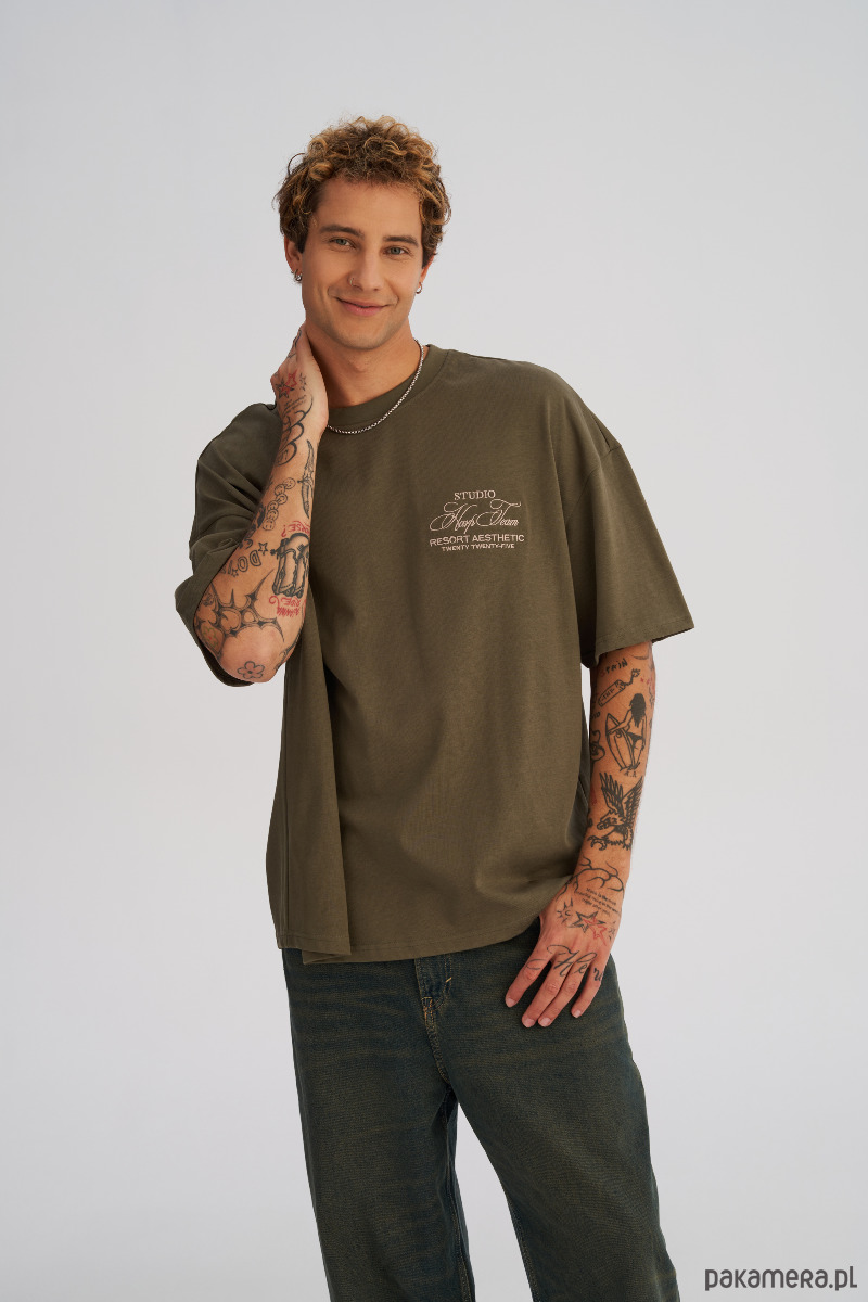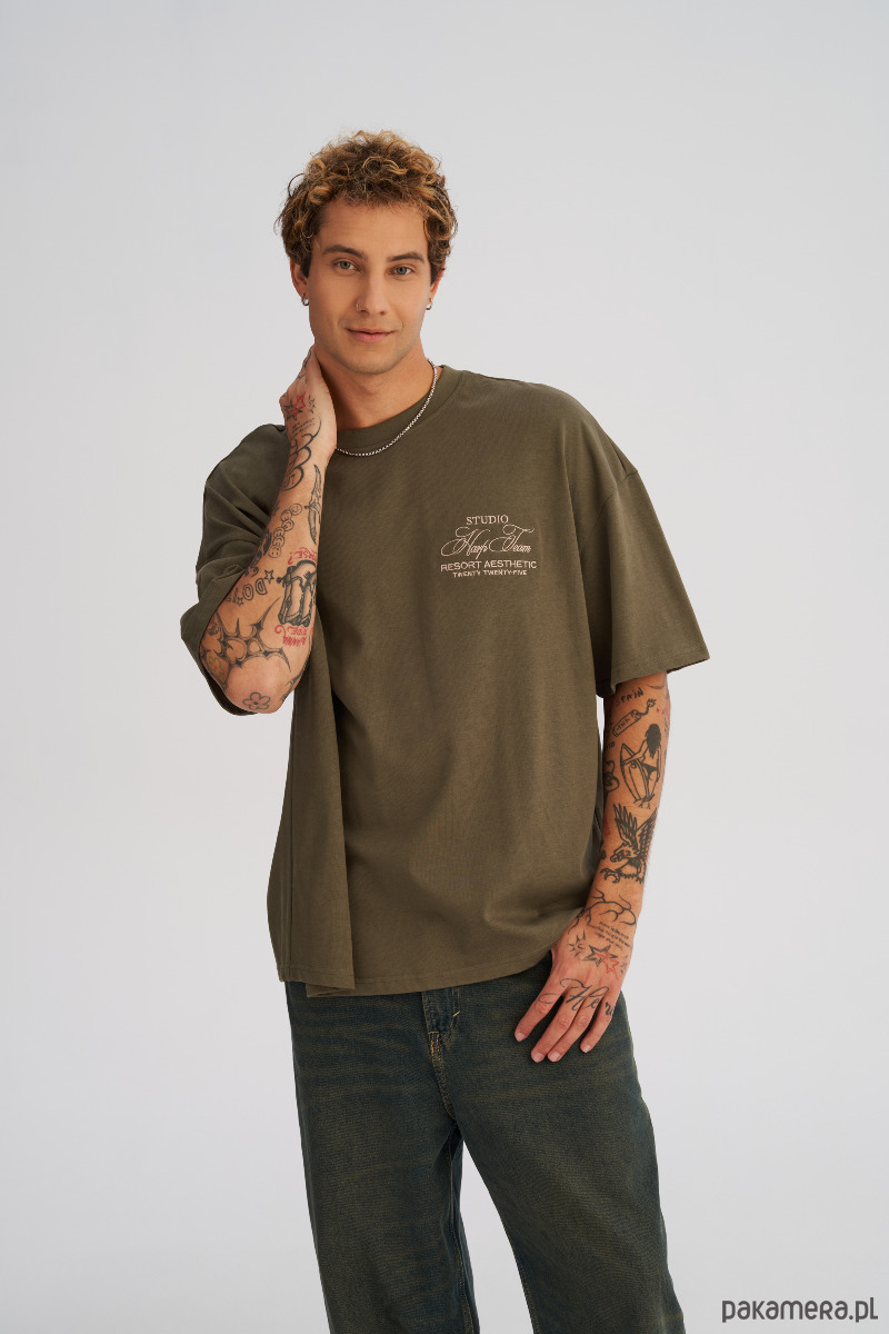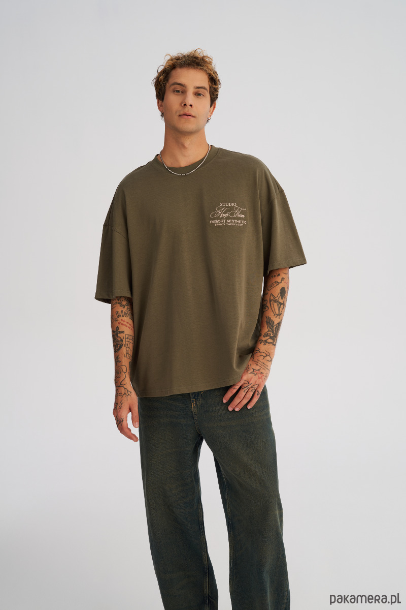 Koszulka męska BOXY FIT z ciężkiej bawełny oliwkowa