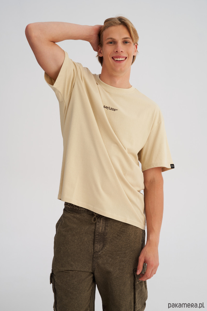 Koszulka męska o regularnym kroju z małym haftem na przodzie. Klasyczny charakter łączy się tu z nowoczesnym detalem. Prosty fason dobrze układa się na sylwetce i sprawia, że to pewna baza w każdej szafie. Stonowany kolor ułatwi budowanie prostych, spójnych outfitów bez zastanawiania się nad dopasowaniem.