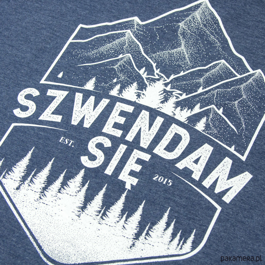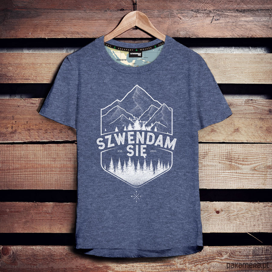 Męska koszulka bawełniana z dużym nadrukiem nawiązującym kształtem do odznaki (tarczy). Nadruk został wykonany techniką sitodruku, dlatego pomimo imponujących rozmiarów nie stanowi grubego, sztywnego kawałka gumy. Przód koszulki jest miękki i w pełni oddychający. Grafika przedstawia napis Szwendam się na tle potężnego masywu górskiego i lasu iglastego. Motyw ten pokochają mężczyźni, którzy czują się emocjonalnie związani z naturą. Jeśli w górach jesteś najlepszą wersją samego siebie, to znaczy, że jest to t-shirt stworzony właśnie dla Ciebie! Koszulki z nadrukami szyjemy w całości w Polsce. Posiadają one:- niespieralny nadruk wykonany w technice sitodruku- karczek z fragmentem mapy - odblask na karku- dekolt wzmocniony podwójnym szwem- wygodny i dopasowany krój (regular fit)- gramaturę 180g/m2- są miękkie i przyjemne w dotyku- skład: 60% bawełna / 40% poliester