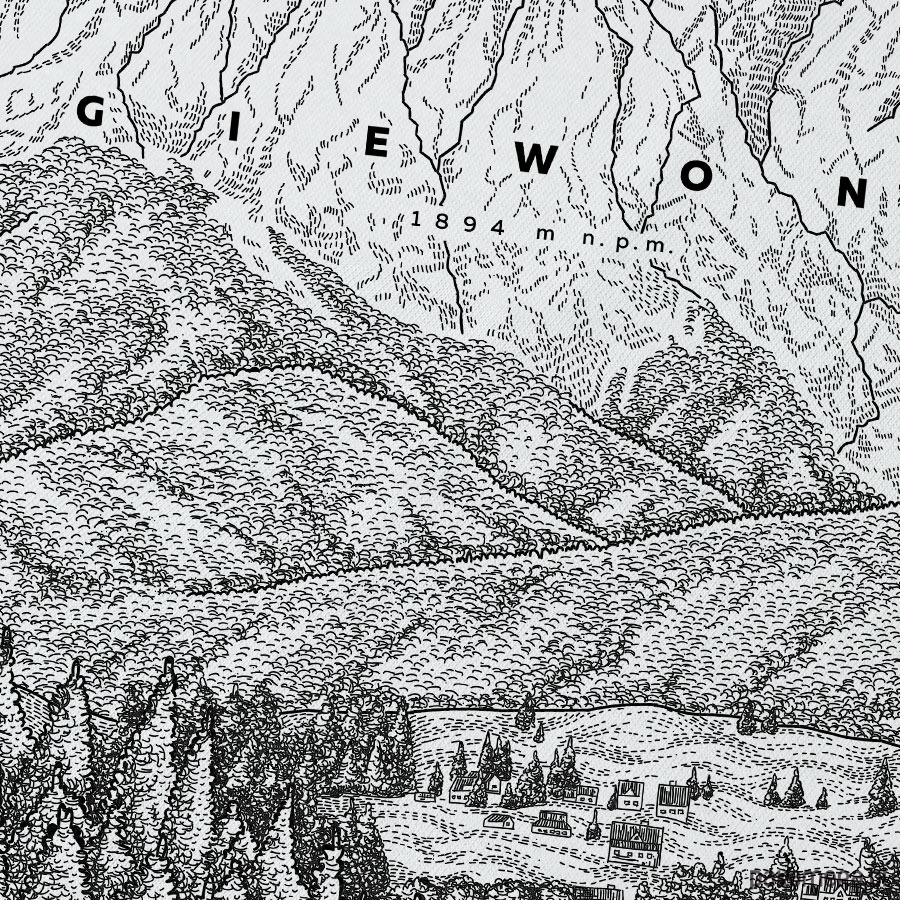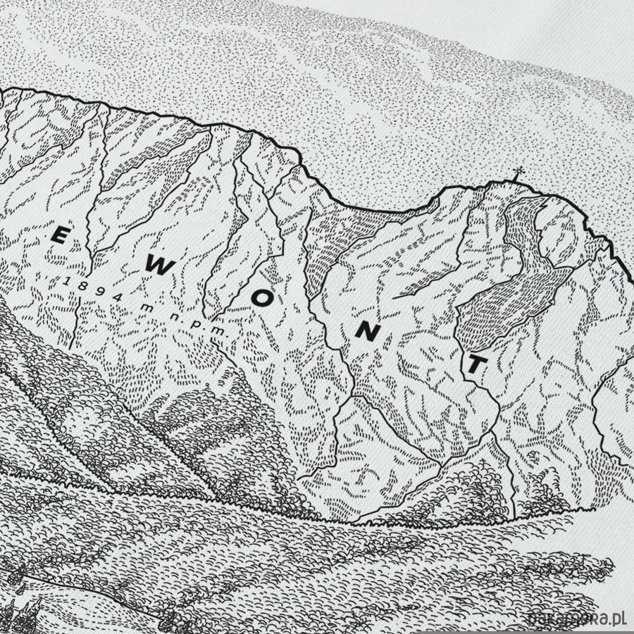 T-shirt męski w białym kolorze z nadrukiem przedstawiającym jeden z najpopularniejszych widoków, a zarazem symboli w naszym kraju - szczyt Giewont (1894 m n.p.m.). Ze względu na swój majestatyczny kształt nazywany bywa również śpiącym rycerzem, który według legendy ma się przebudzić, gdy Polska stanie w obliczu wielkiego niebezpieczeństwa. Giewont jest również celem licznych pielgrzymek ze względu na 15-metrowy żelazny krzyż znajdujący się na jego wierzchołku. Grafikę uzupełnia stado pasących się owiec, motyw ten jest nierozłączną częścią tego regionu i nawiązuje do podhalańskich tradycji.