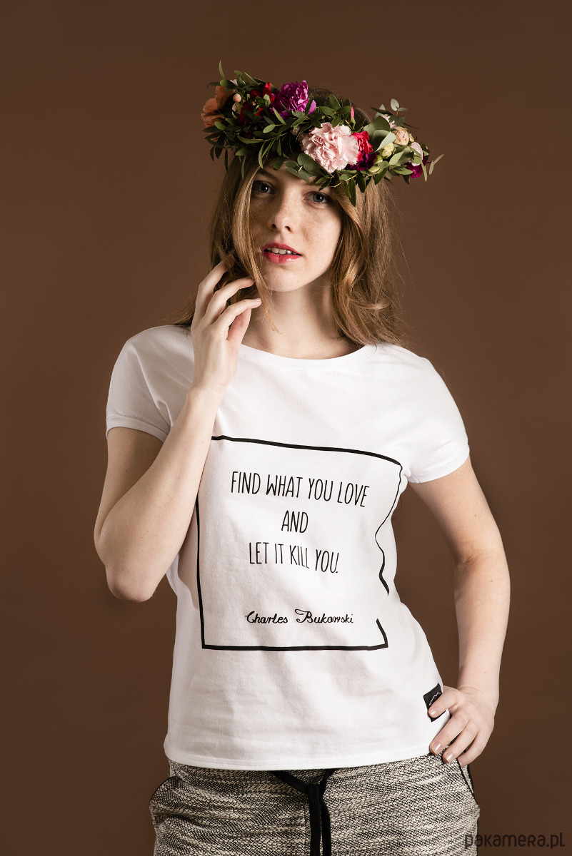 Koszulka damska z krótkimi rękawami i zaokrąglonym dekoltem.