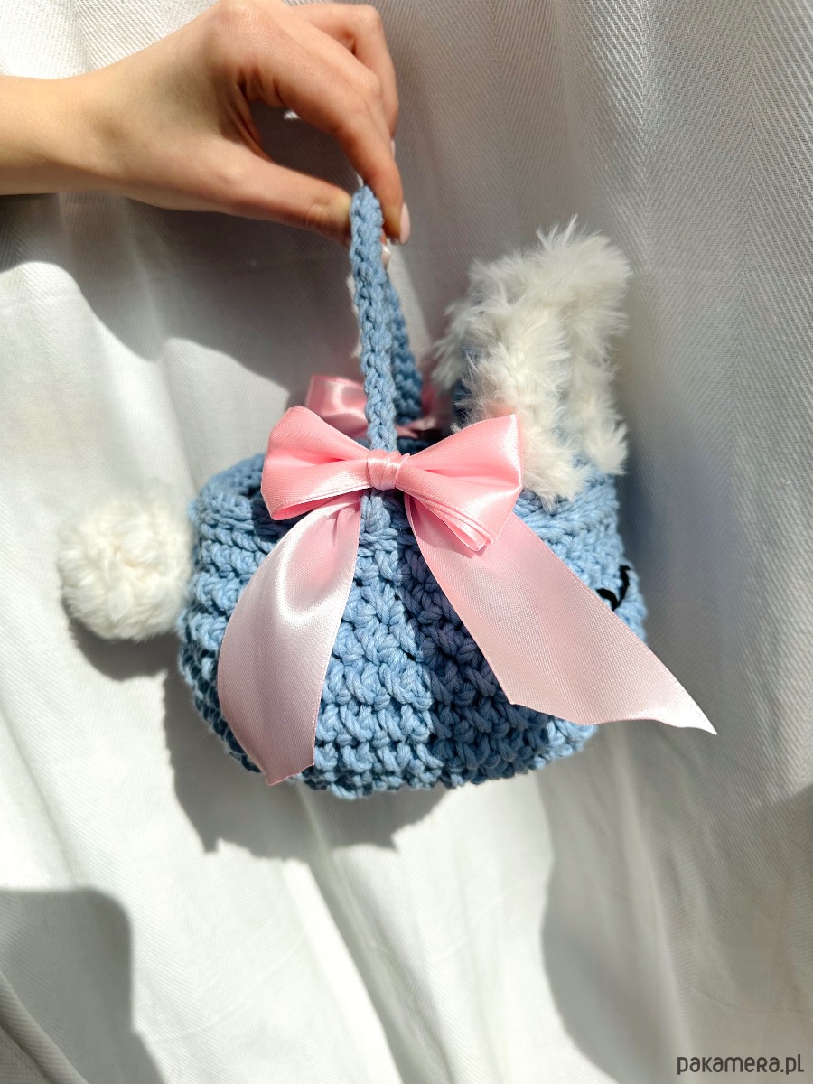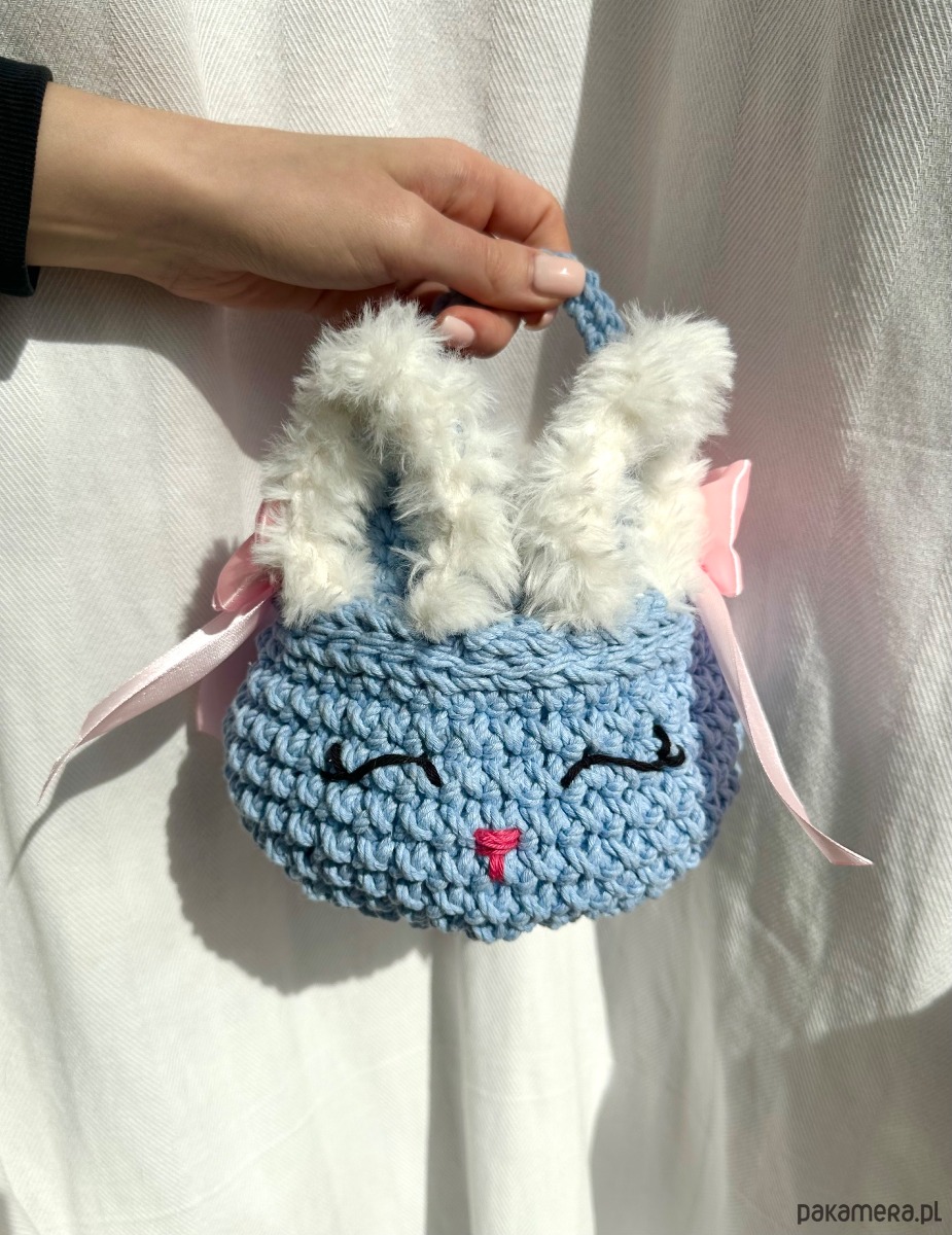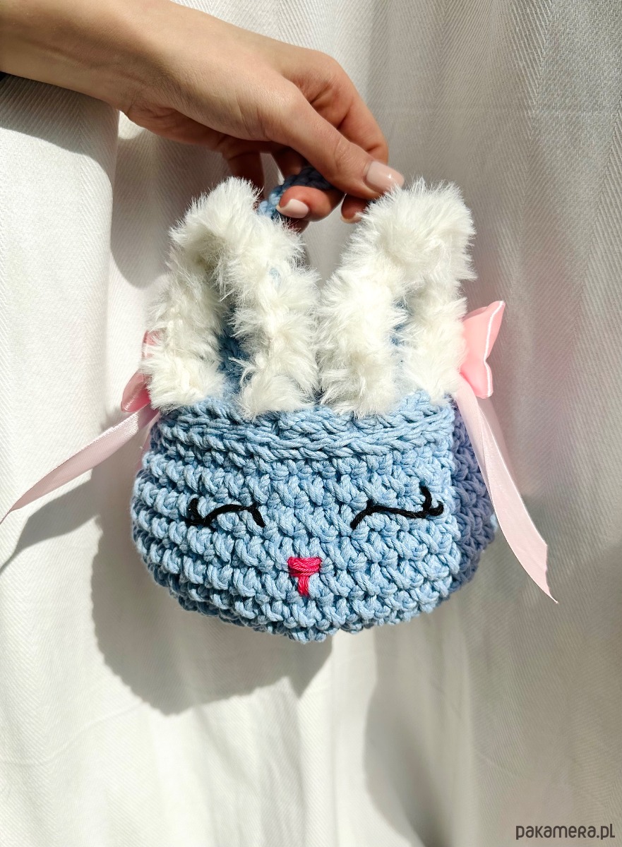 Koszyk Wielkanocny Zajączek jest wykonany z bawełnianych sznurków z dodatkiem sztucznego futerka, które zdobi uszy oraz ogonek 🐰💐