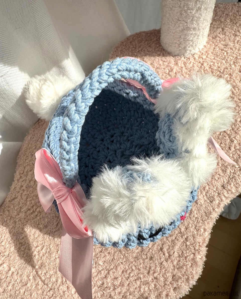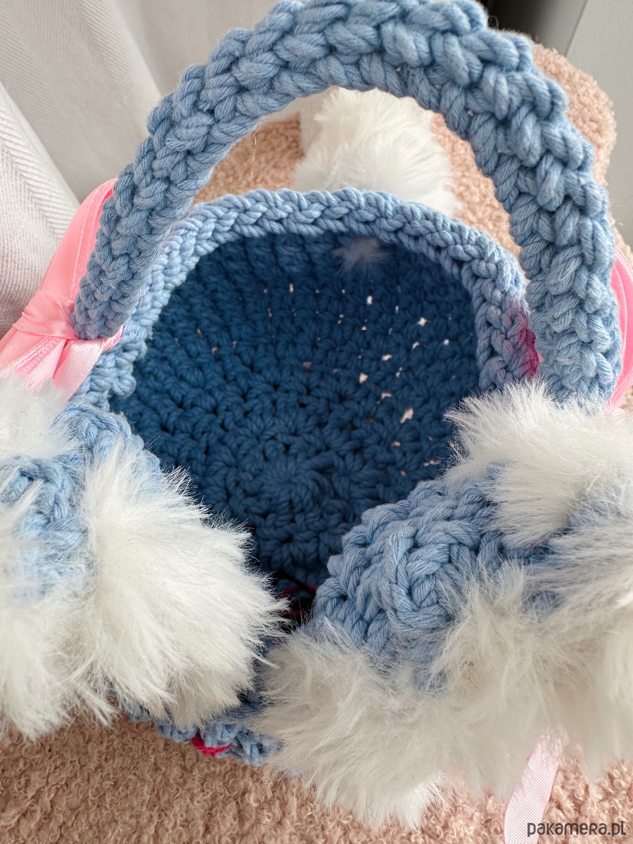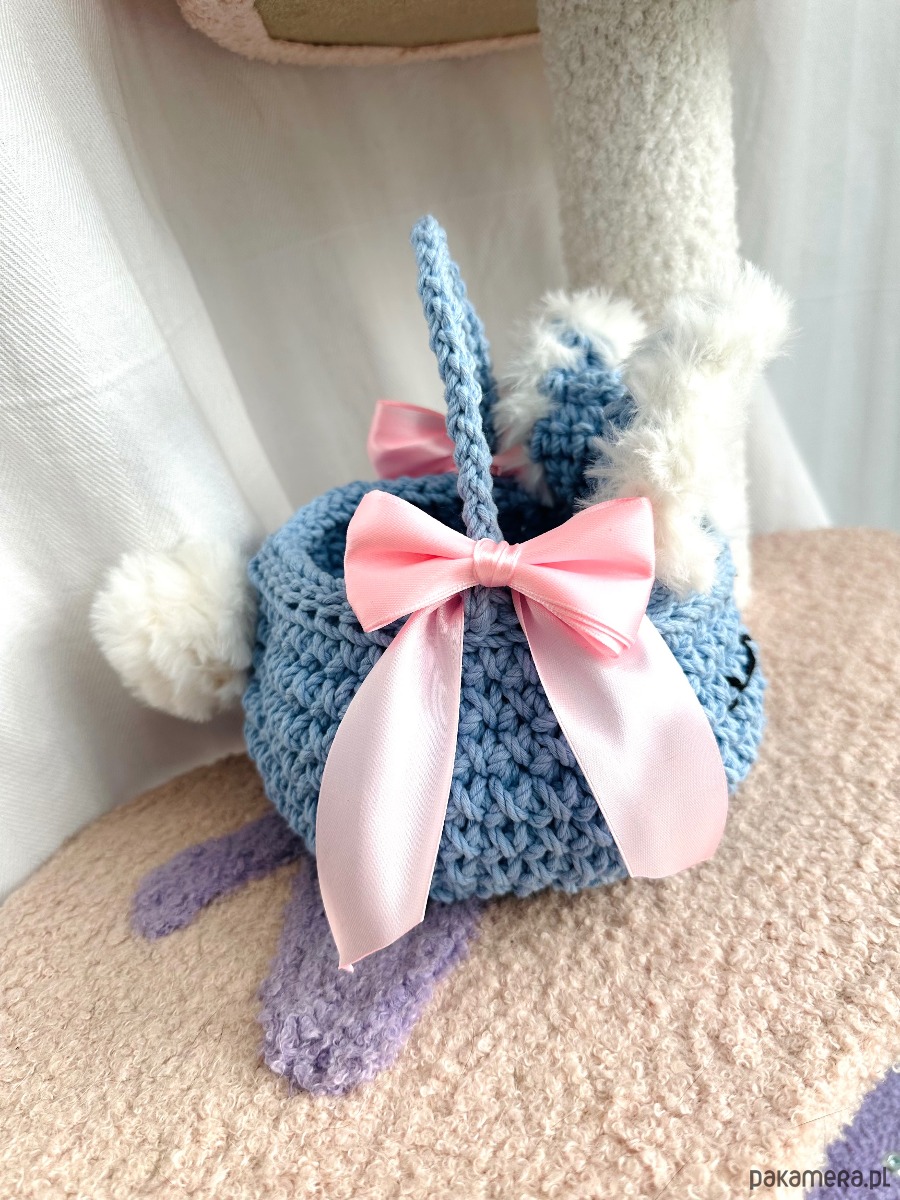 Koszyk Wielkanocny Zajączek jest wykonany z bawełnianych sznurków z dodatkiem sztucznego futerka, które zdobi uszy oraz ogonek 🐰💐