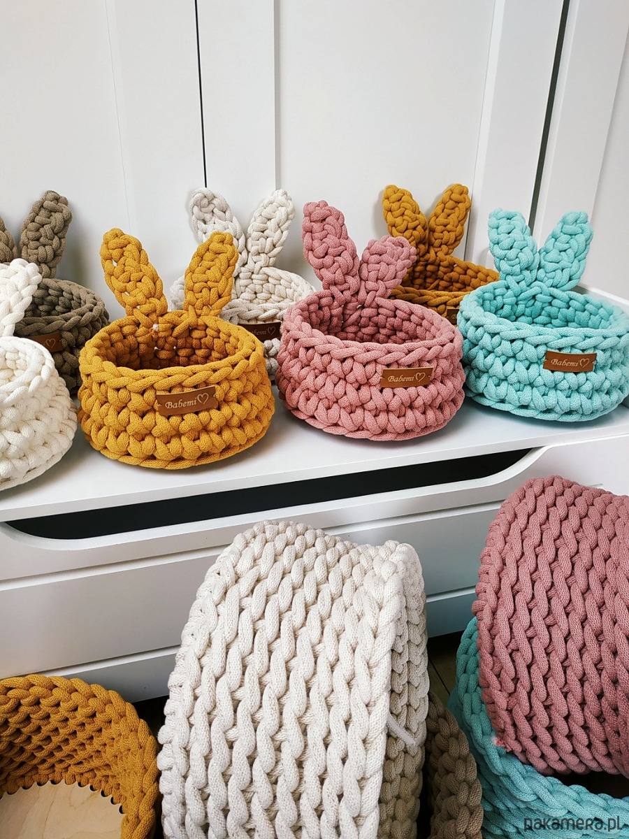 Przepiękne koszyczki wykonane z grubego i mięsistego sznurka bawełnianego.