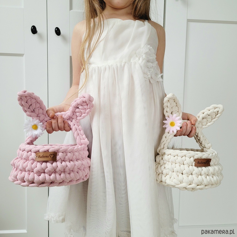 Cudowne i słodkie koszyczki króliczki ozdobią każdy pokój dziecięcy i sprawią wiele radości małemu szkrabowi. Ozdobią również pięknie dom na święta wielkanocne.