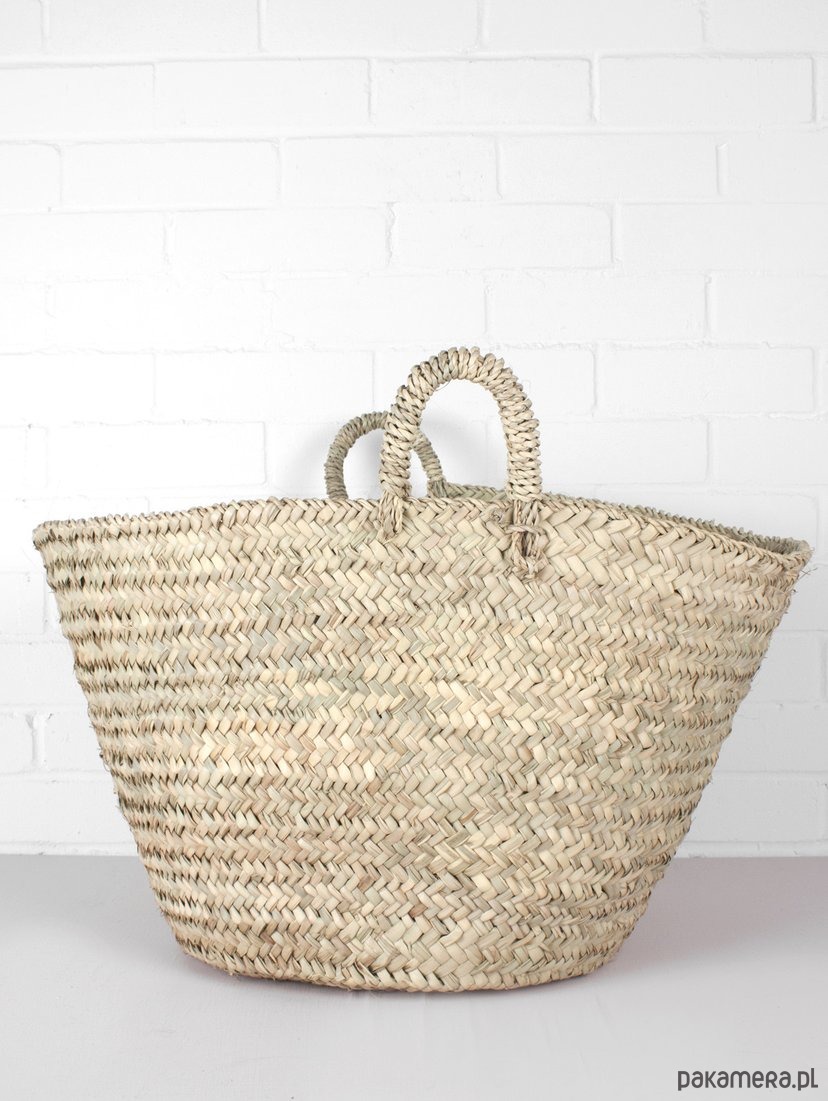 Średni koszyk o klasycznym kształcie z okrągłym dnem, pleciony z liści palmowych, Idealny na lato i do przechowywania, w stylu boho.