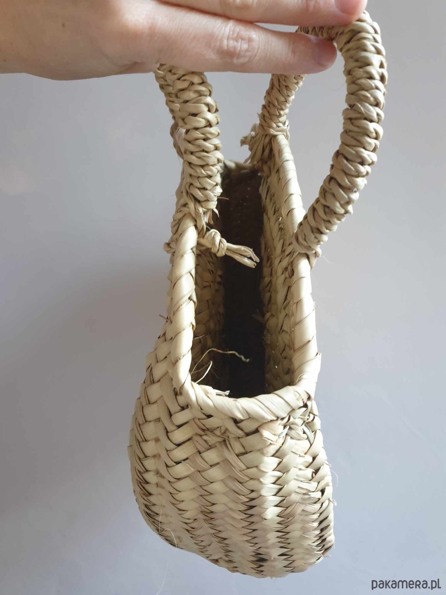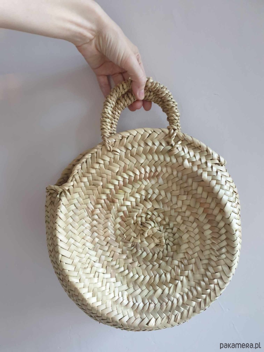 Mały okrągły koszyk, pleciony z liści palmowych, Idealny na lato i do przechowywania, w stylu boho.