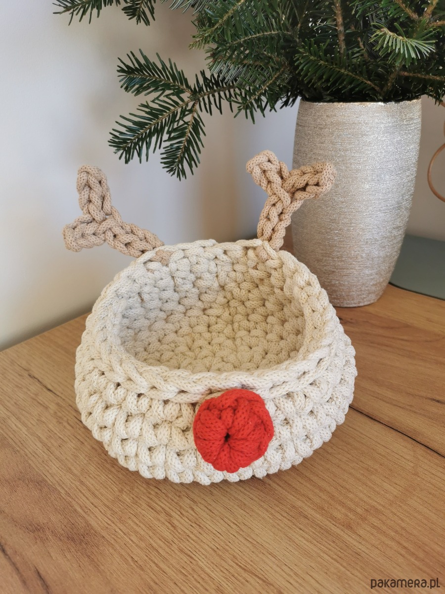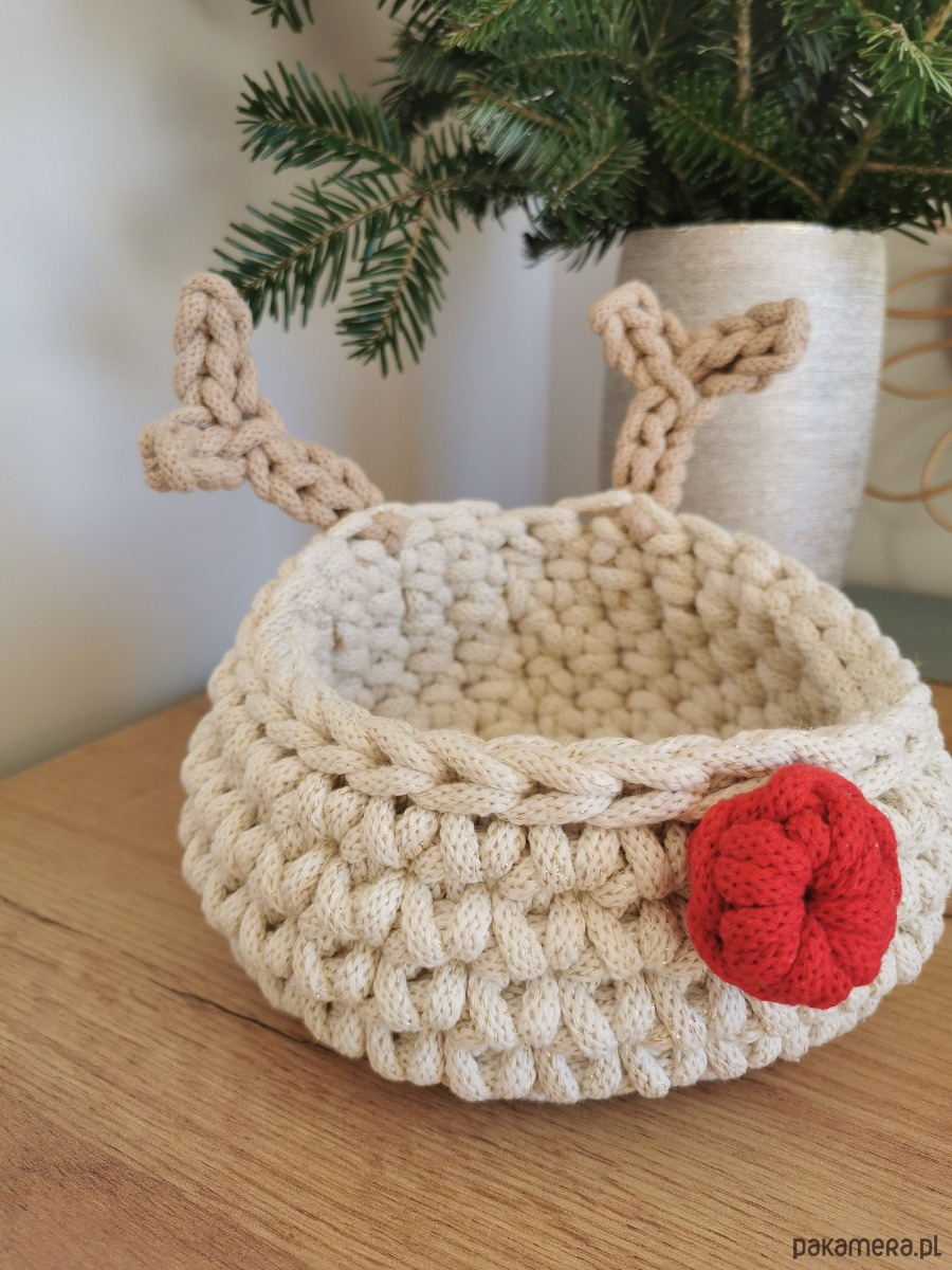 Koszyk renifer Rudolf w kolorze kremowym (naturalnym) to piękna świąteczna ozdoba domu.