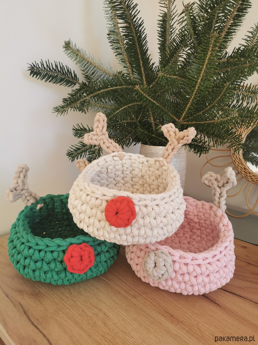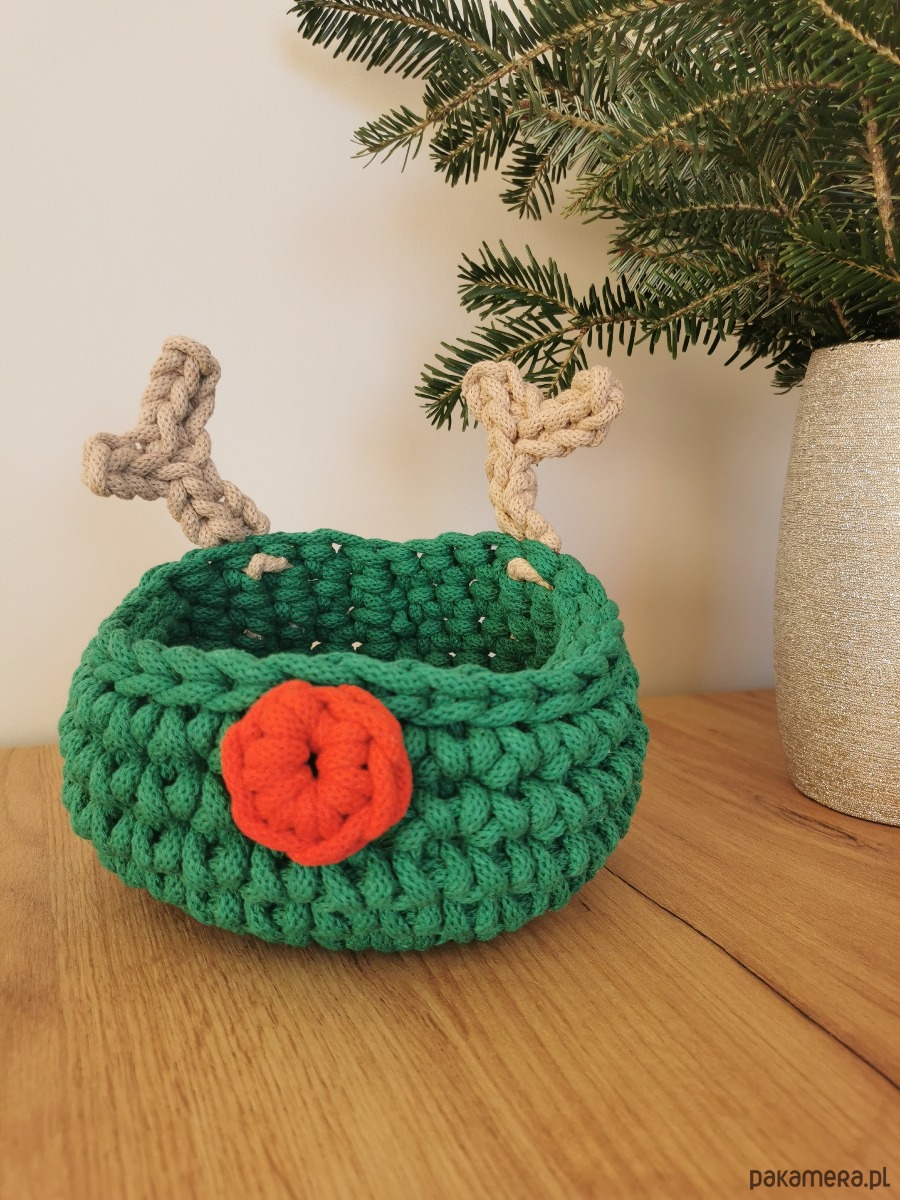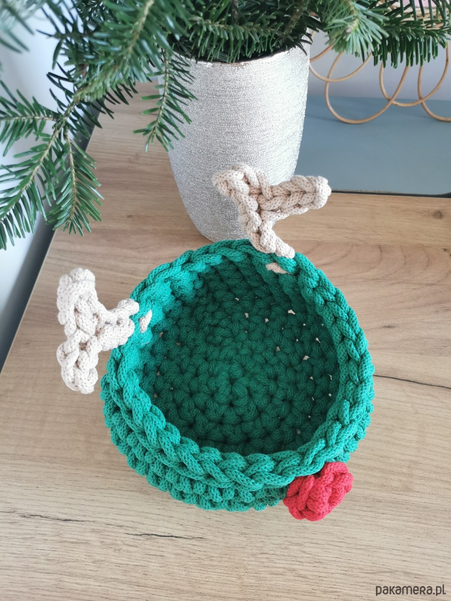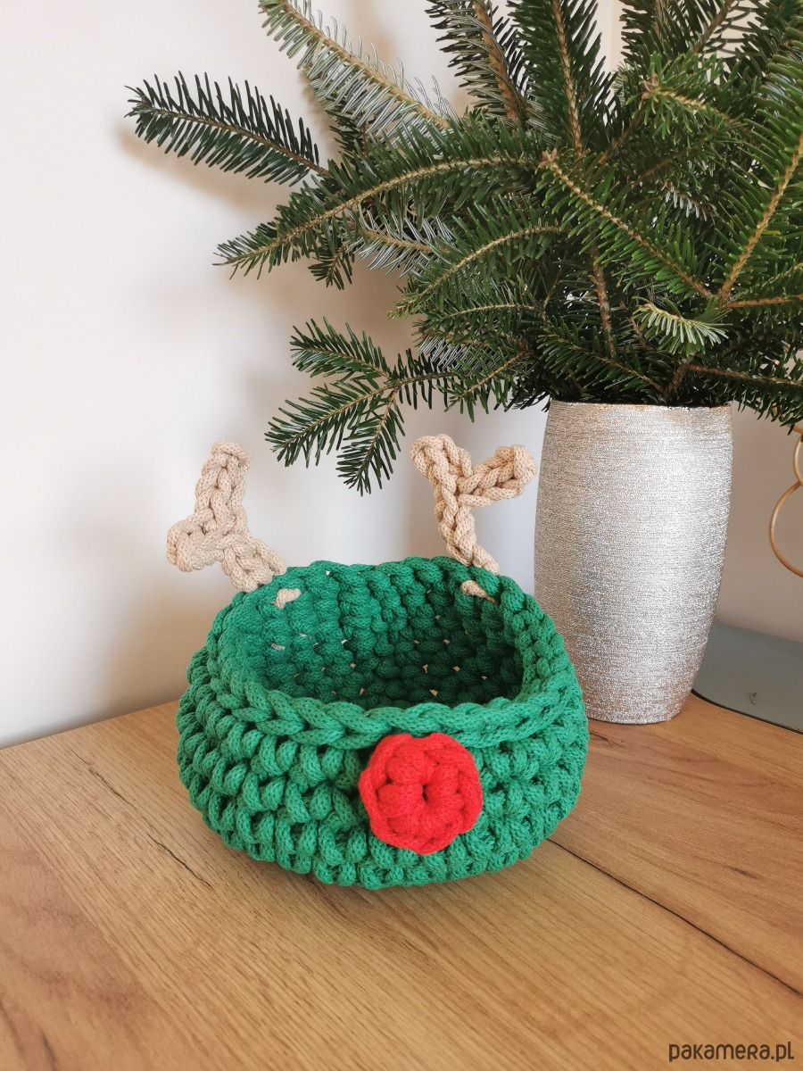 Koszyk renifer Rudolf w kolorze zielonym to piękna świąteczna ozdoba domu.