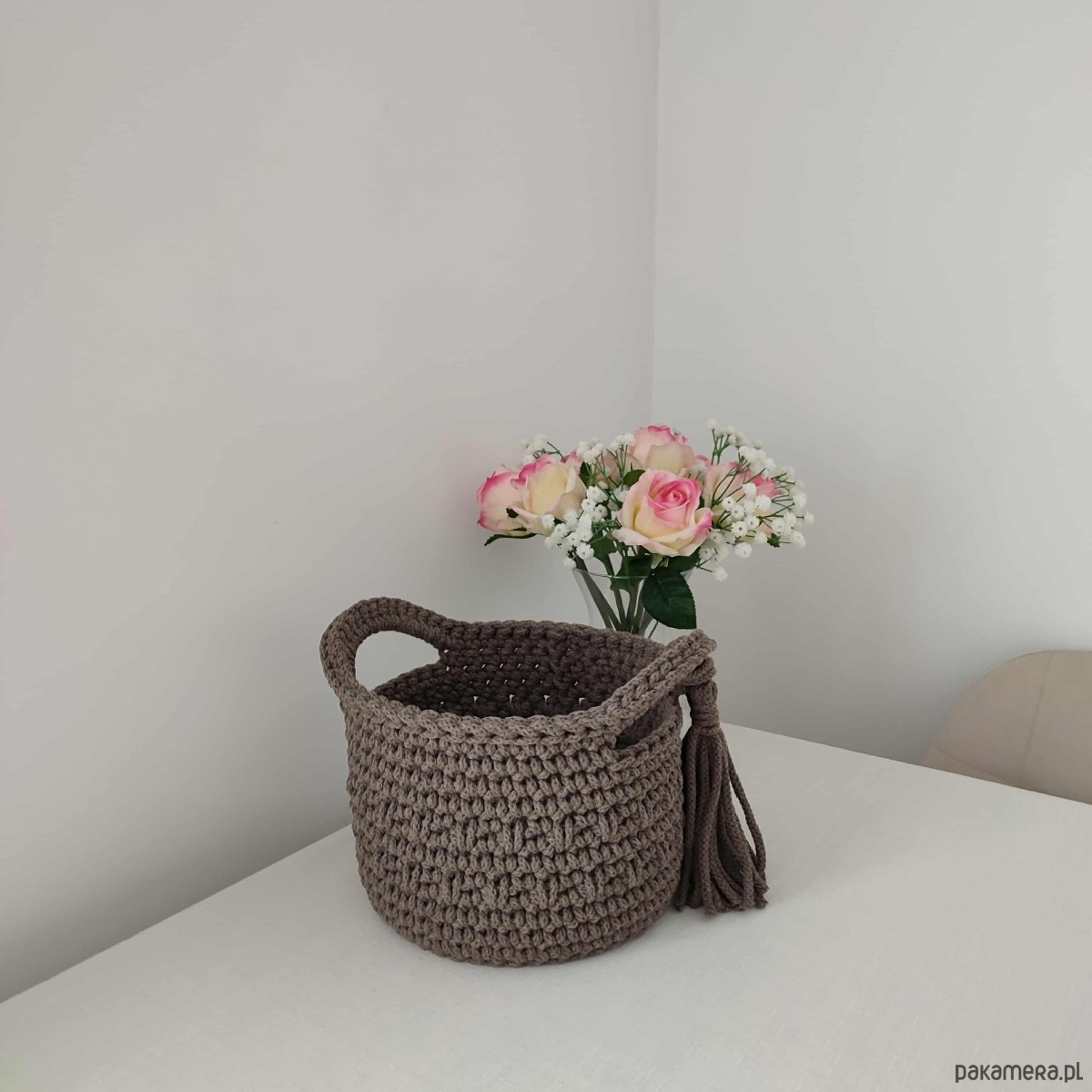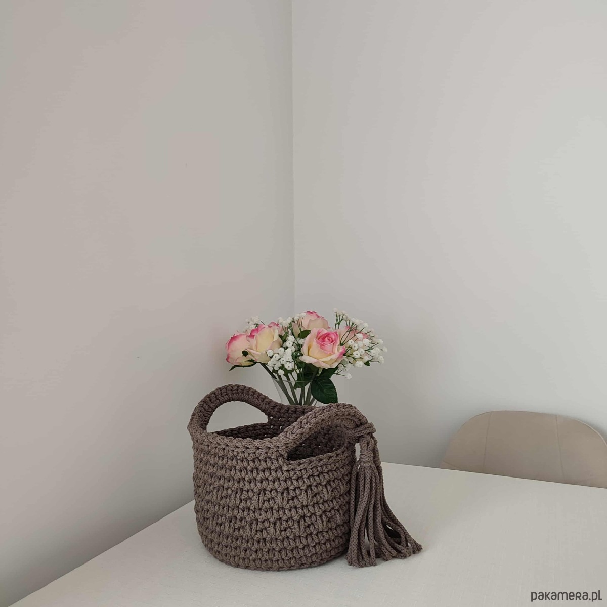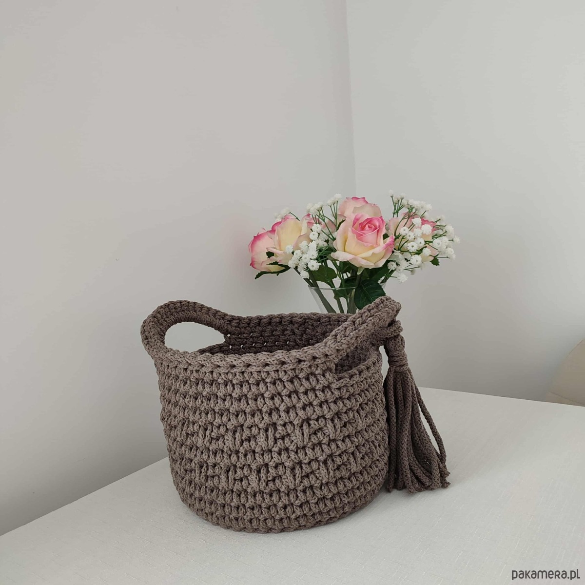 Koszyk o średnicy 20cm i wysokość 15cm, wykonany metodą szydełkowania z polskiego sznurka bawełnianego 5mm.