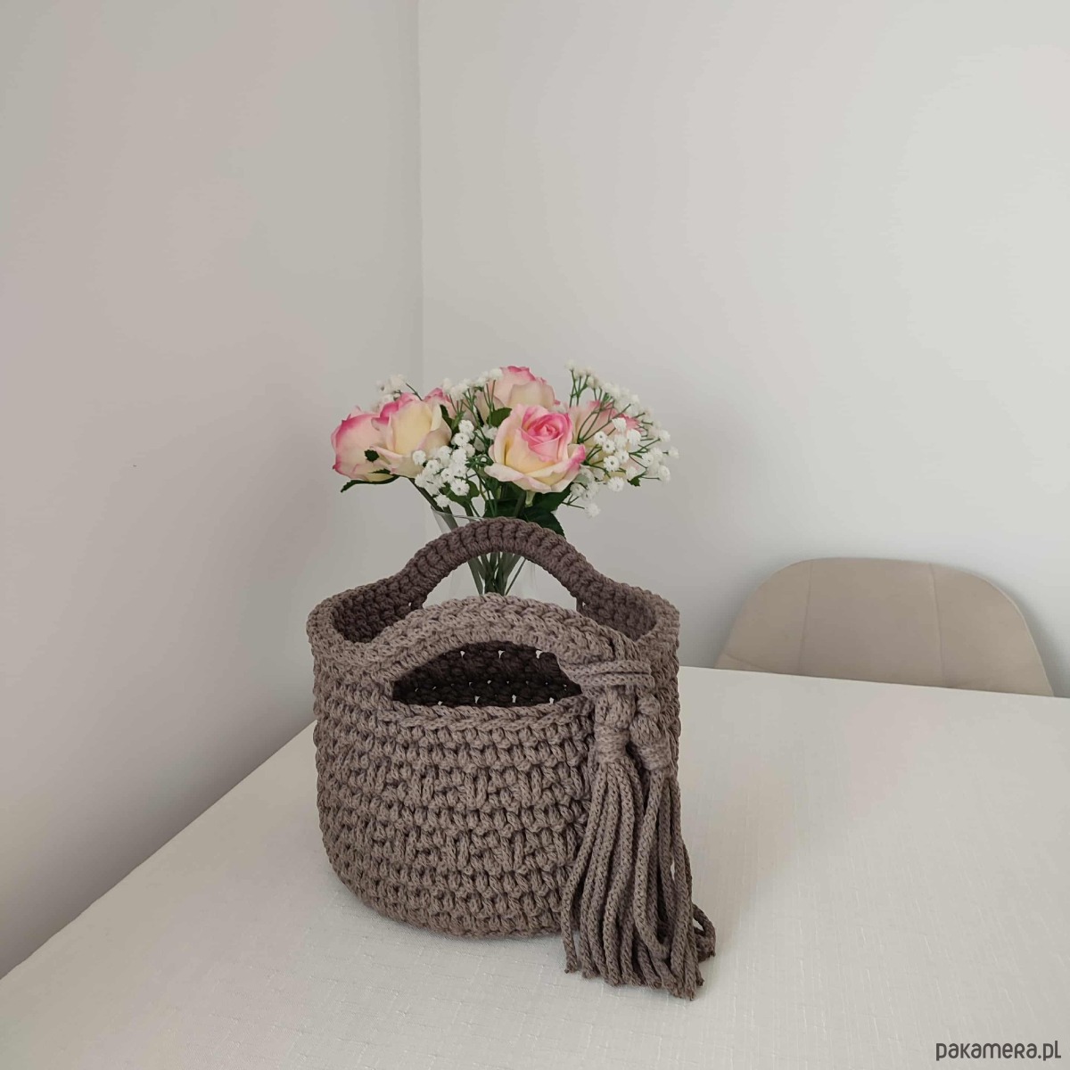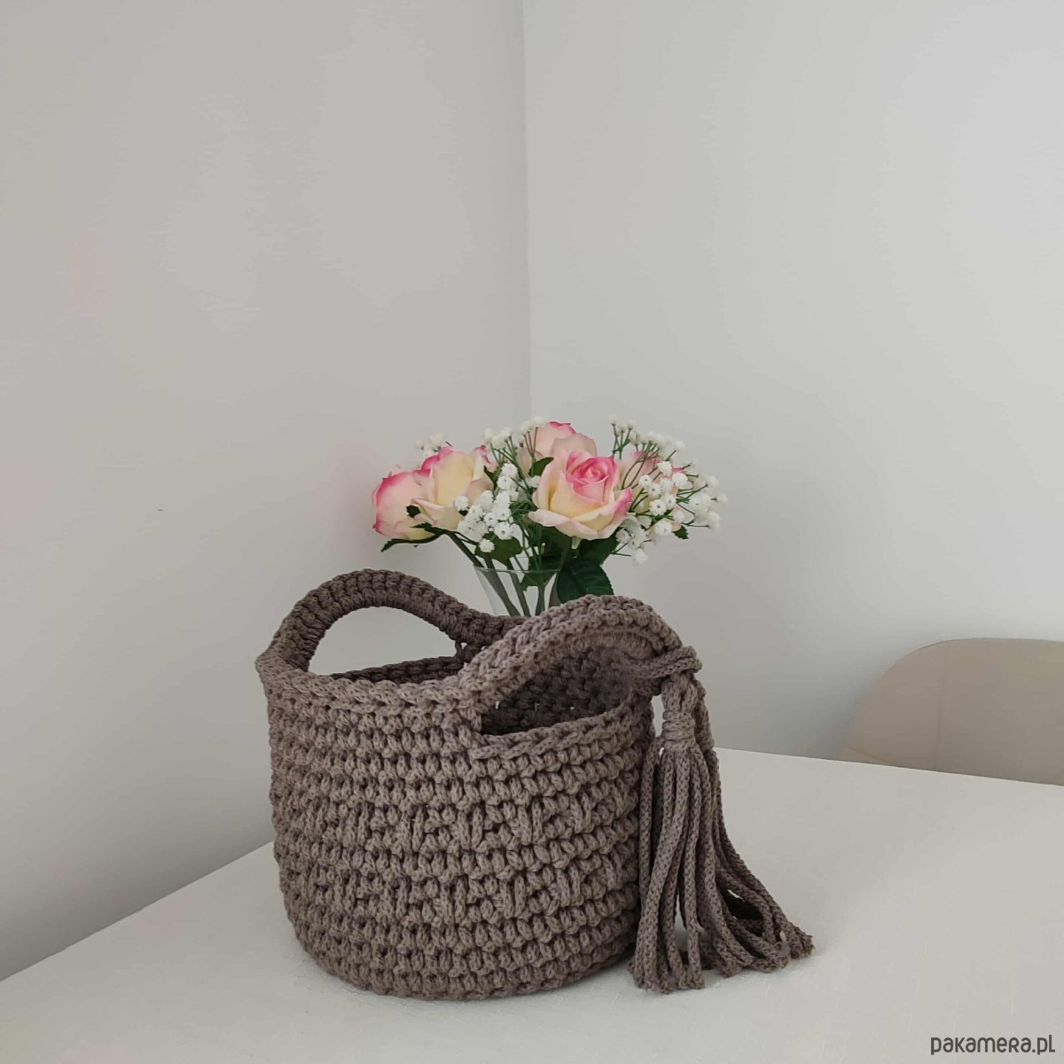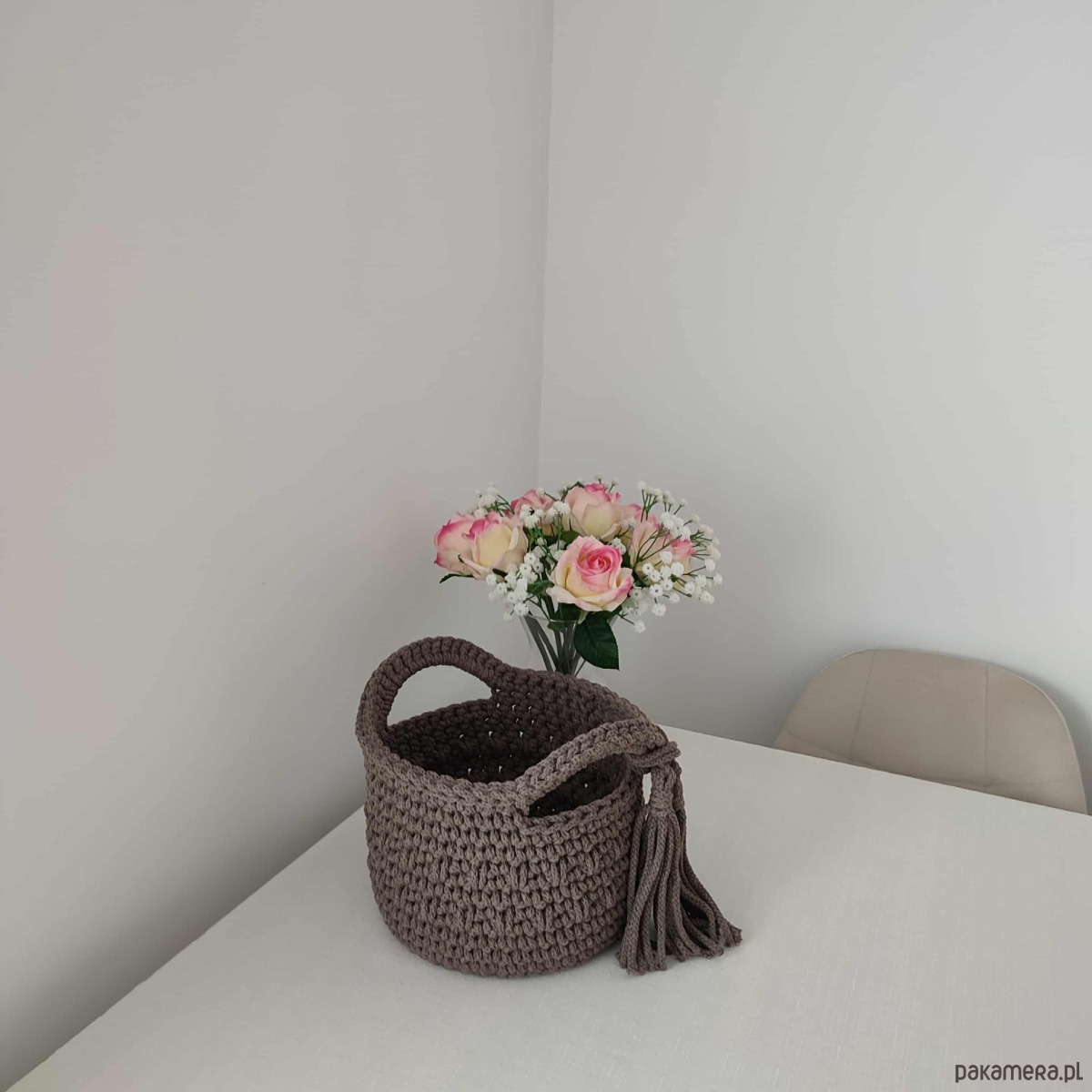 Koszyk o średnicy 20cm i wysokość 15cm, wykonany metodą szydełkowania z polskiego sznurka bawełnianego 5mm.