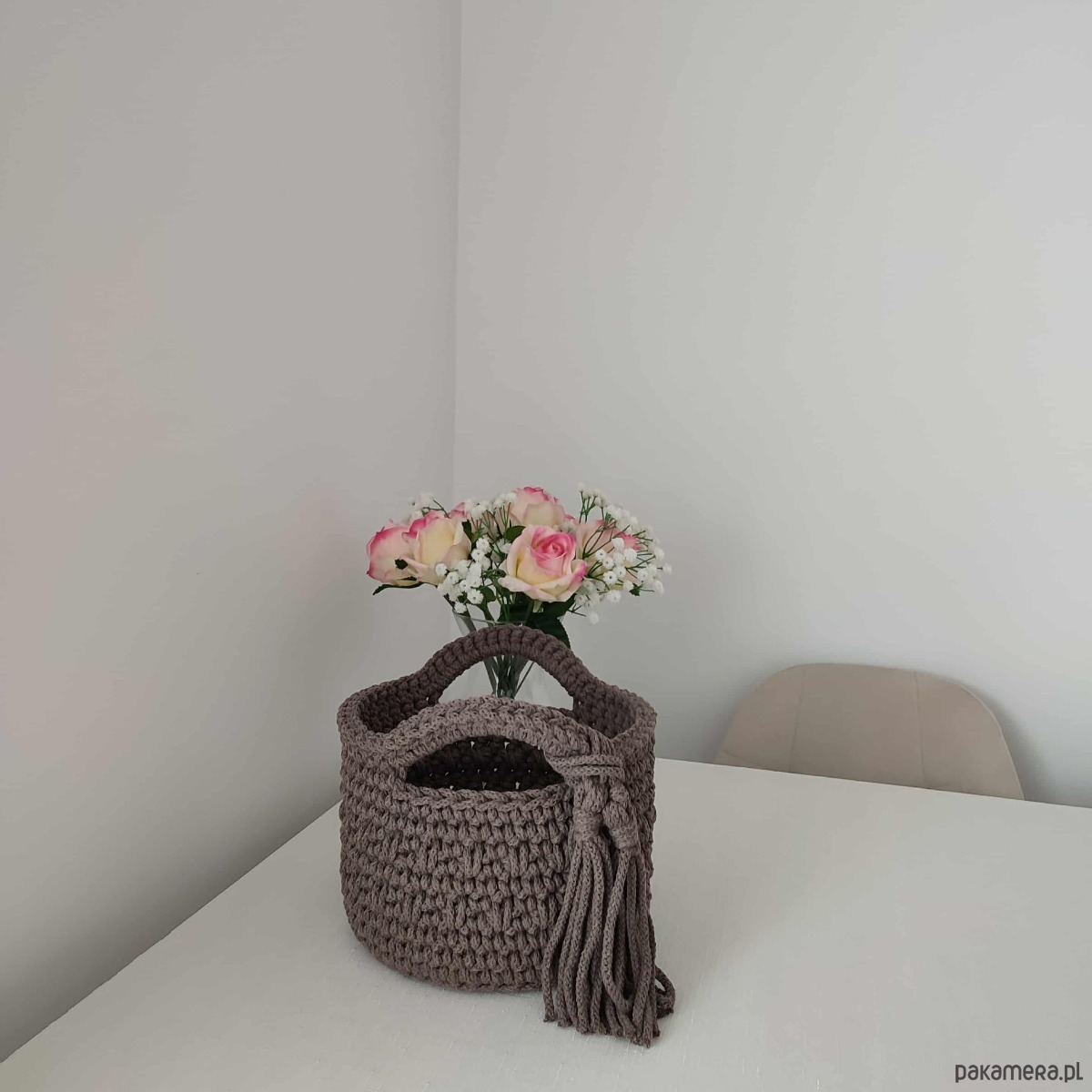 Koszyk szydełkowy okrągły ze sznurka bawełnianego 20cmx15cm