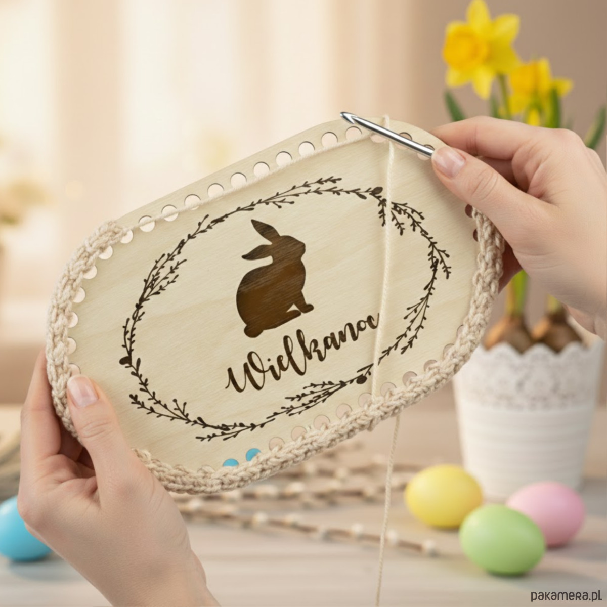 Drewniana baza wielkanocna do szydełkowania w kształcie owalu to idealna podstawa do tworzenia drobnych, ręcznie robionych dekoracji świątecznych. Naturalne drewno i precyzyjne wycięcia sprawiają, że praca z nią jest łatwa i przyjemna.