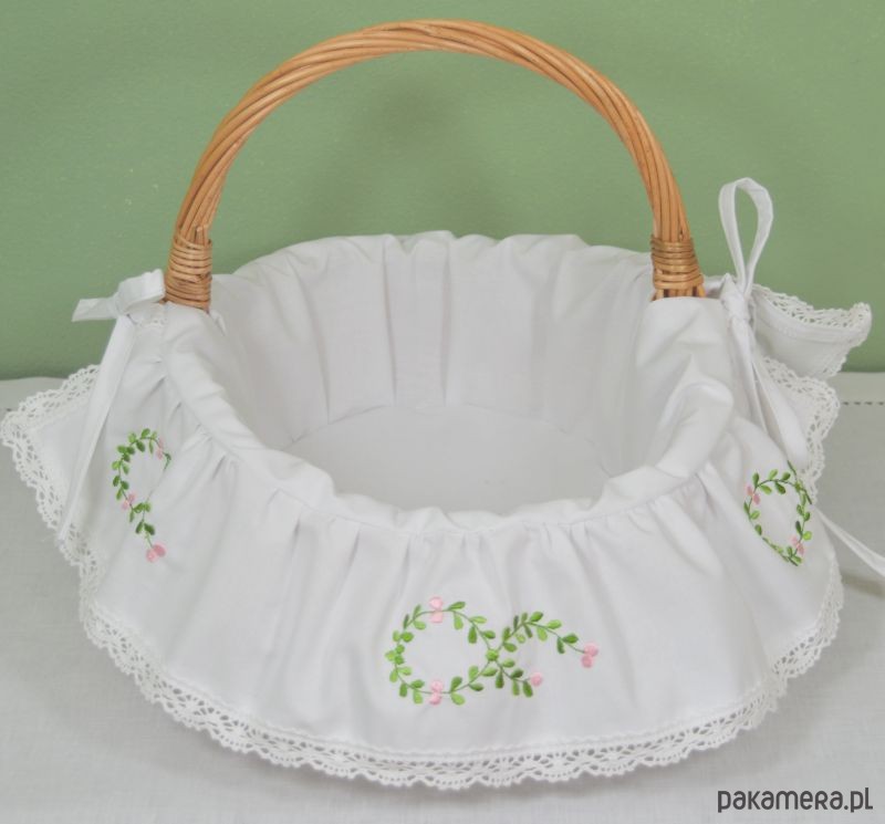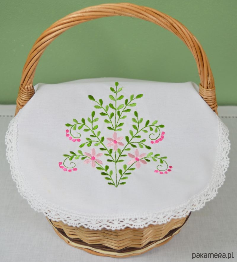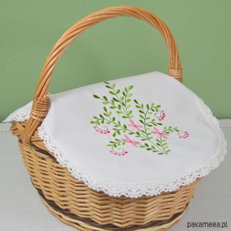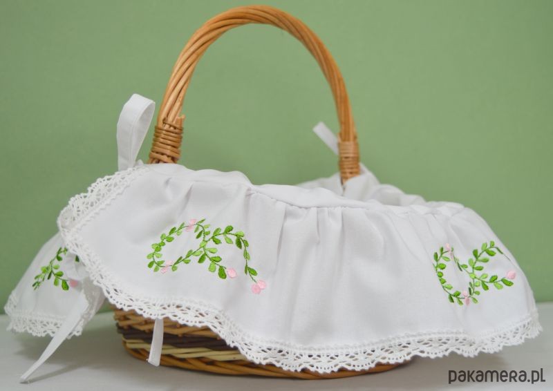 Przedstawiamy Państwu unikatowy koszyk wielkanocny wykonane w naszej pracowni. Wiklinowe koszyczki zdobi wkład z wysokogatunkowej 100% bawełny. Bogate hafty dodają niepowtarzalnego charakteru. Koszyk nawiązuje do naszych rodzimych tradycji, co czyni go wyjątkowym! Oddajemy w Państwa ręce produkt wysokiej jakości, wielokrotnego użytku. Przekonaj się jak piękna może być święconka w naszym koszyku! Do kompletu haftowana serwetka do przykrycia święconki. Koronka do obszycia serwetki może różnić się od tej na zdjęciu, wynika to ze stanów magazynowych oraz dostępności Zapraszamy! Wymiary: 33x24x27cm Tkanina: 100% bawełna Kupuj Polskie Produkty!