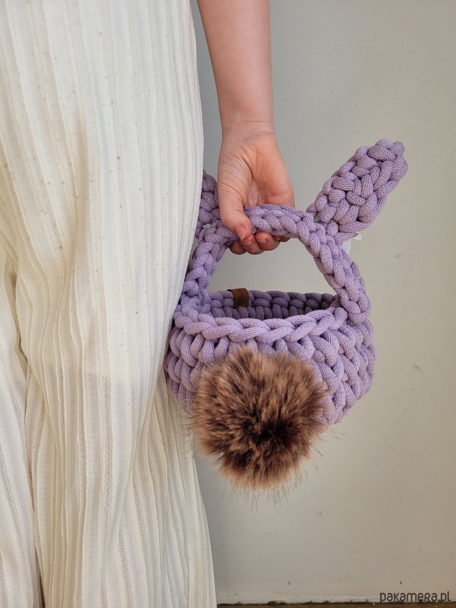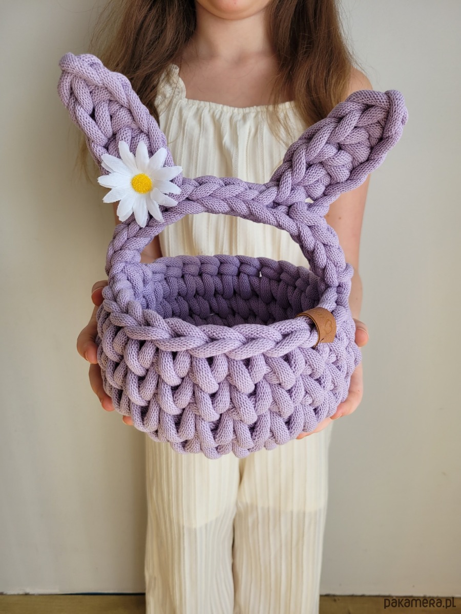 Szydełkowy koszyczek wielkanocny w kształcie króliczka – Lawendowy