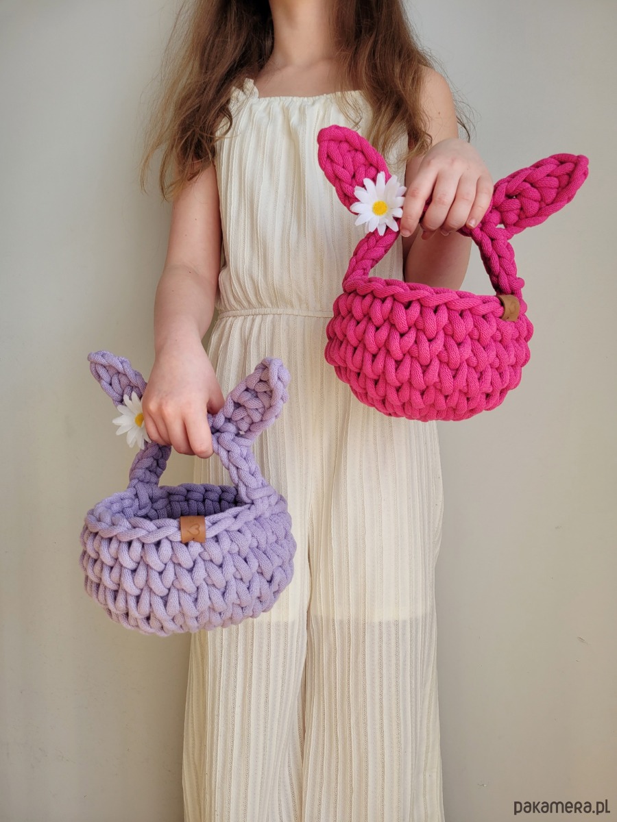 Spraw, aby Wielkanoc była jeszcze bardziej magiczna dzięki temu uroczemu ręcznie wykonanemu koszyczkowi wielkanocnemu w kształcie króliczka. Koszyczek został wykonany ze starannie dobranego sznurka bawełnianego i ozdobiony charakterystycznymi króliczymi uszkami oraz przepięknym puszystym ogonkiem, który dodaje mu wyjątkowego uroku.