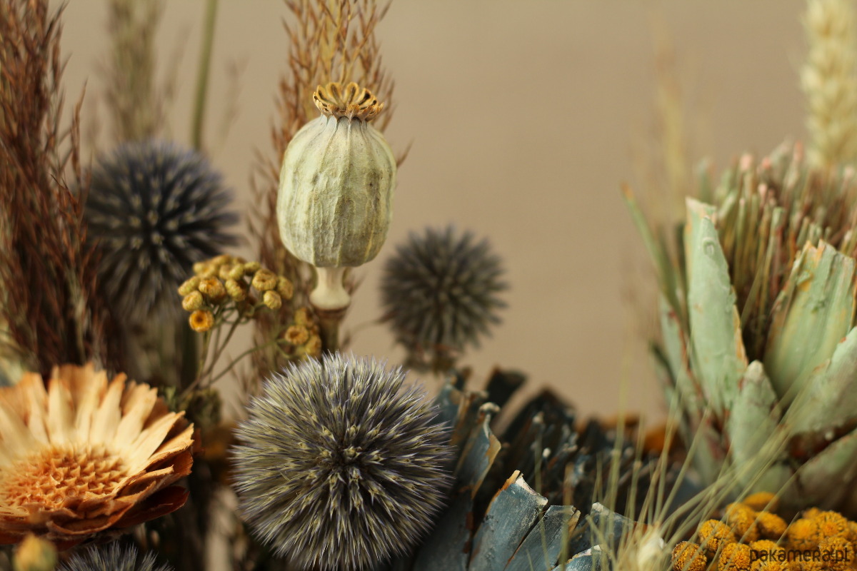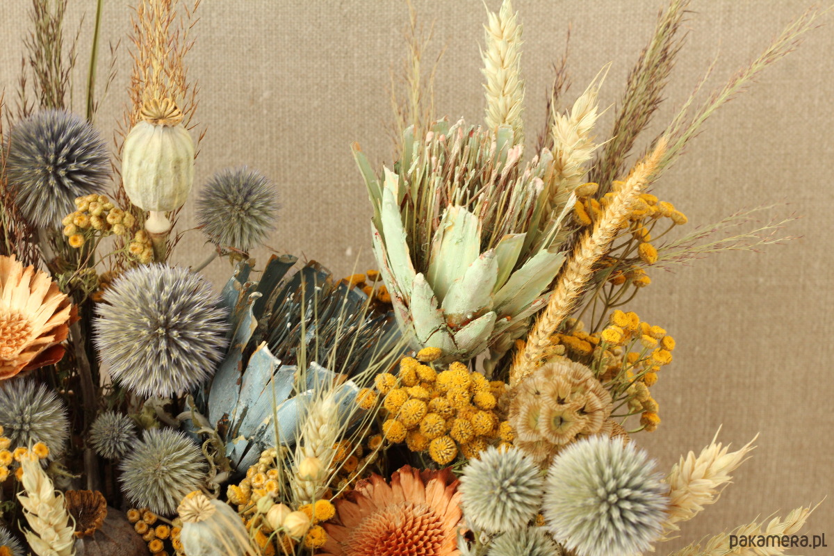 ,,Regionalna egzotyka'' to połączenie suszonych egzotycznych roślin jak protea, z regionalnymi łąkowymi gatunkami jak wrotycz, trzcina, przegorzan, mak a także zbożem, lnem i skabiozą.