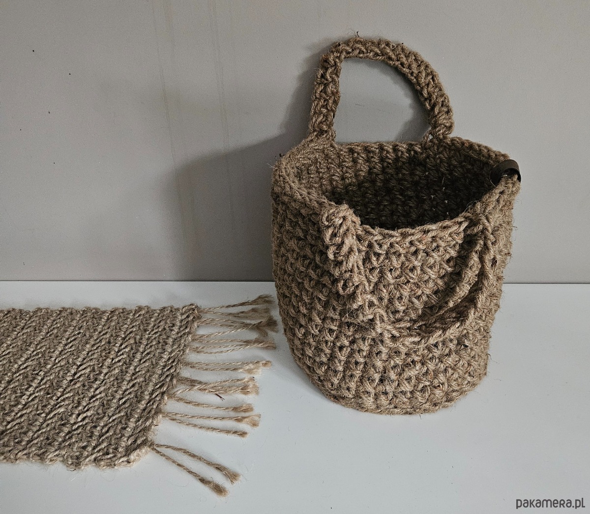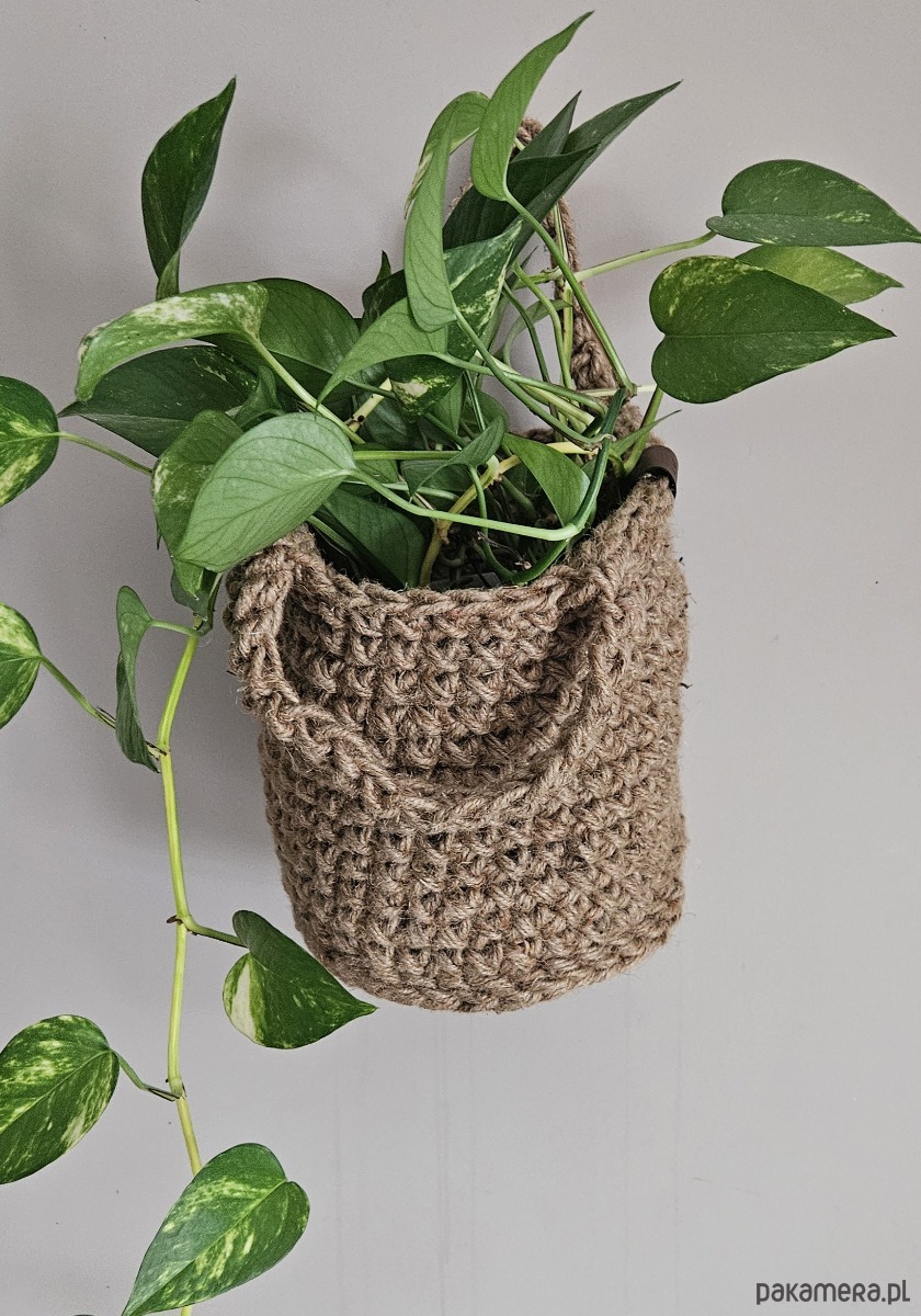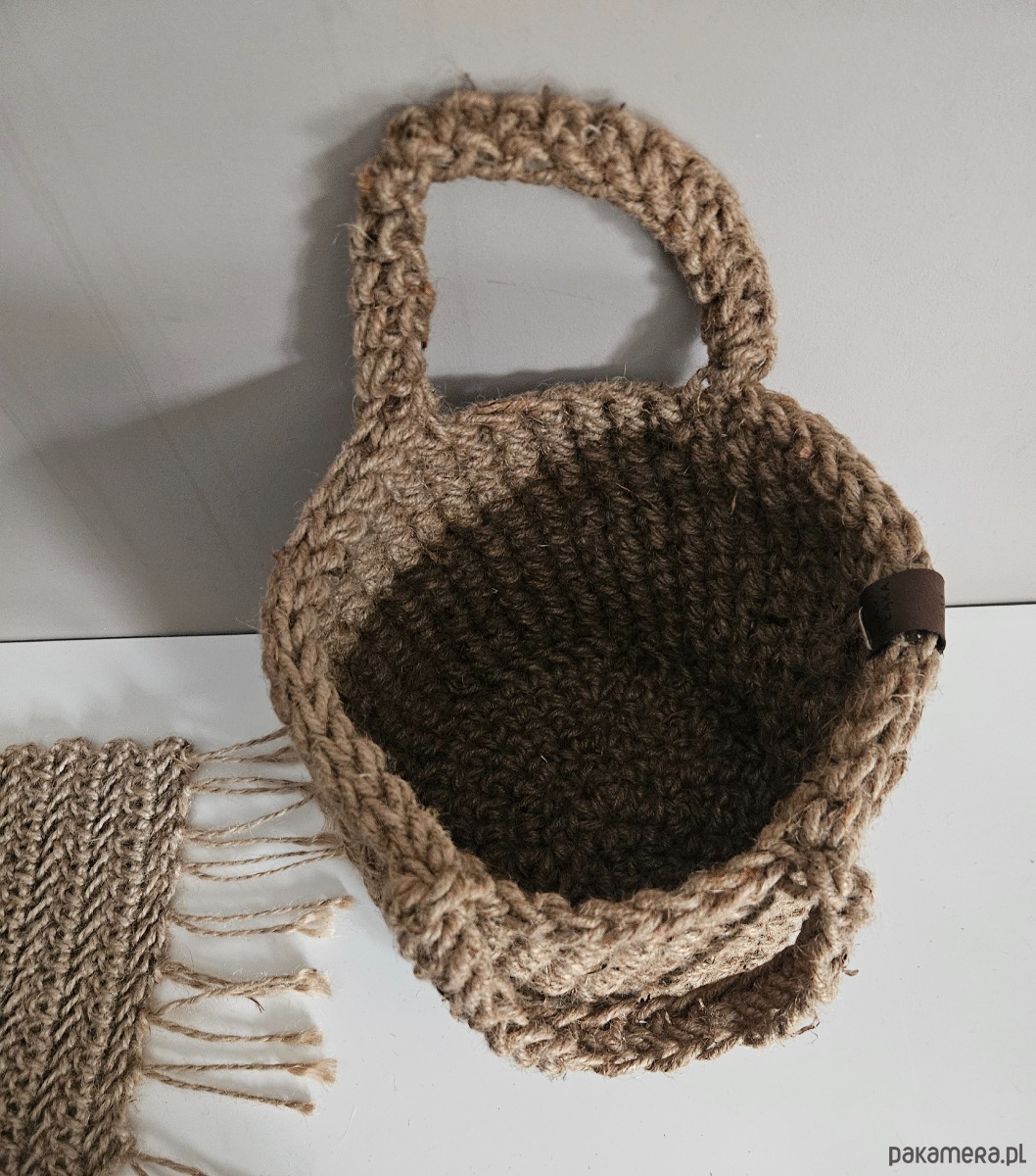 Koszyk ze sznurka konopnego – ręcznie robiony na szydełku