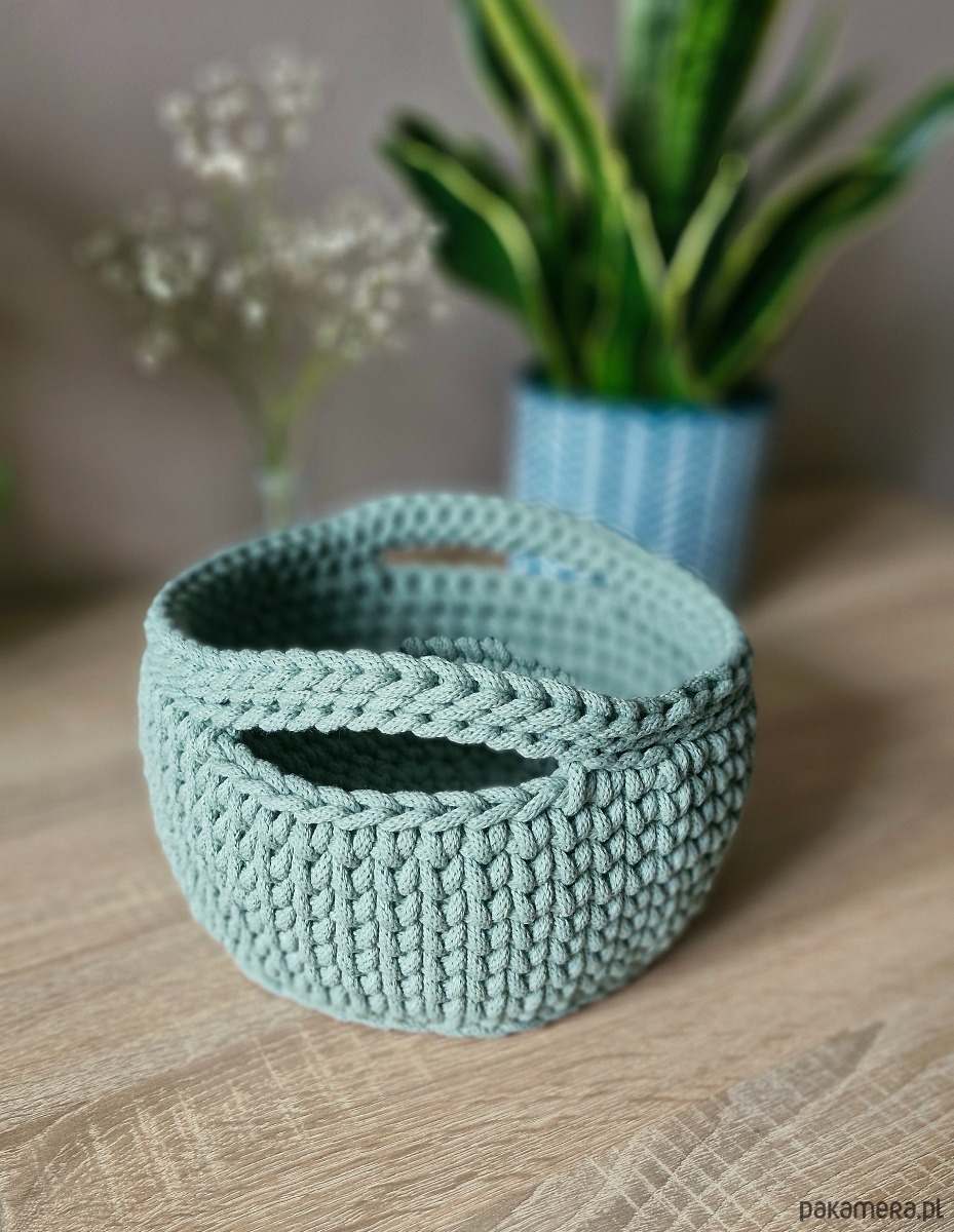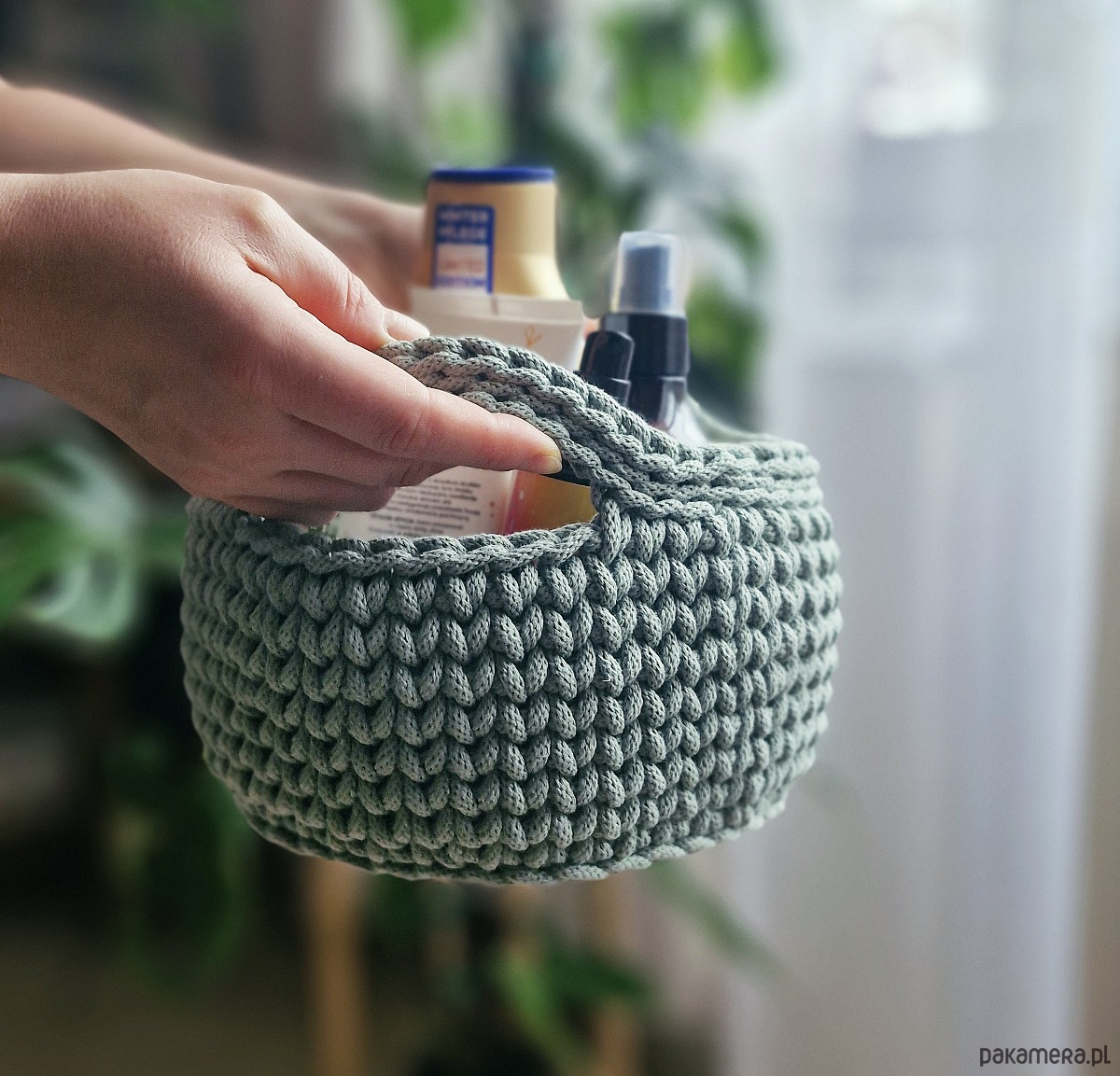 Koszyk z uszami wykonany ręcznie ze sznurka bawełnianego to świetny pomysł na uporządkowanie swojej przestrzeni dodając jej jednocześnie ciepła. Ten stylowy dodatek, poza tym, że jest praktyczny, to świetnie sprawdzi się również jako element dekoracyjny w garderobie, sypialni czy łazience. Wygodne uszy pozwalają swobodnie przenosić koszyk z zawartością. Ten produkt wpisuje się idealnie do wnętrz w stylu skandynawskim oraz boho.
