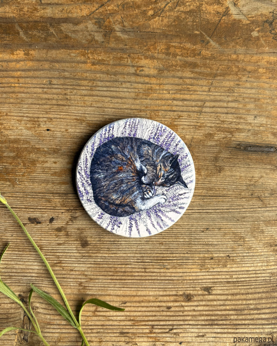 Kot- Kot we wrzosie- Magnes ceramiczny- Ilustracja- Zwierzaki