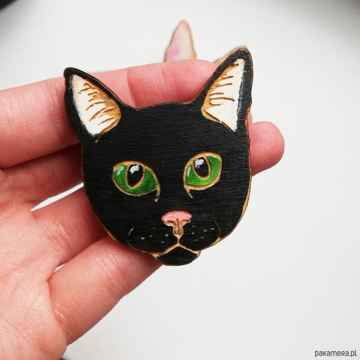 Broszka wykonana z drewna i ręcznie malowana, następnie lakierowana. Każda będzie niepowtarzalna. Wielkość ok. 6cm