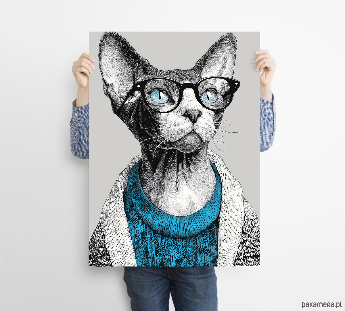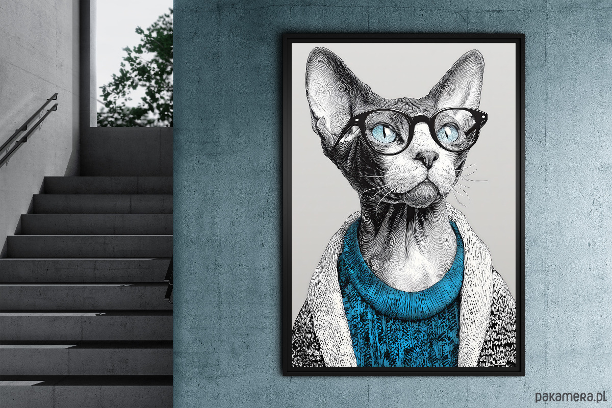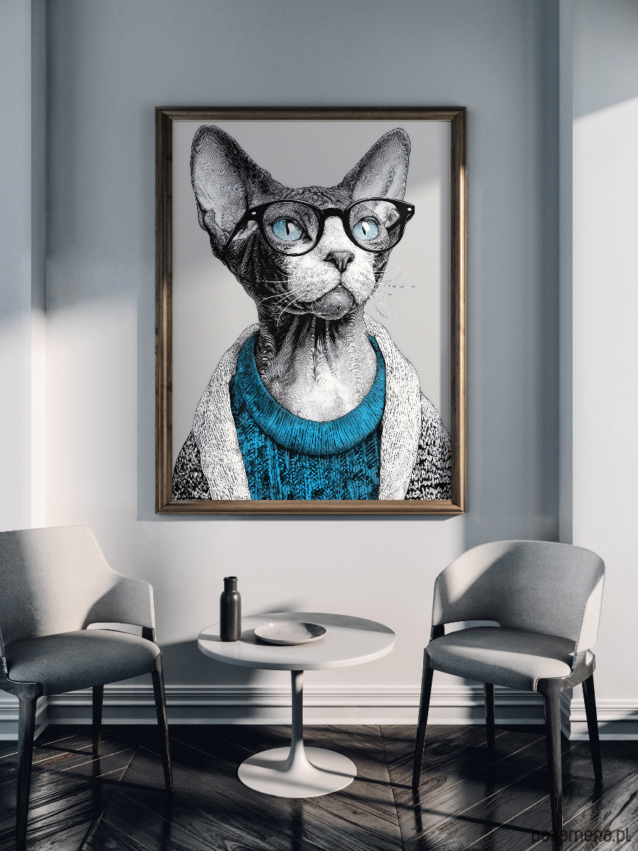 Kot w niebieskim swetrze - grafika na plakacie