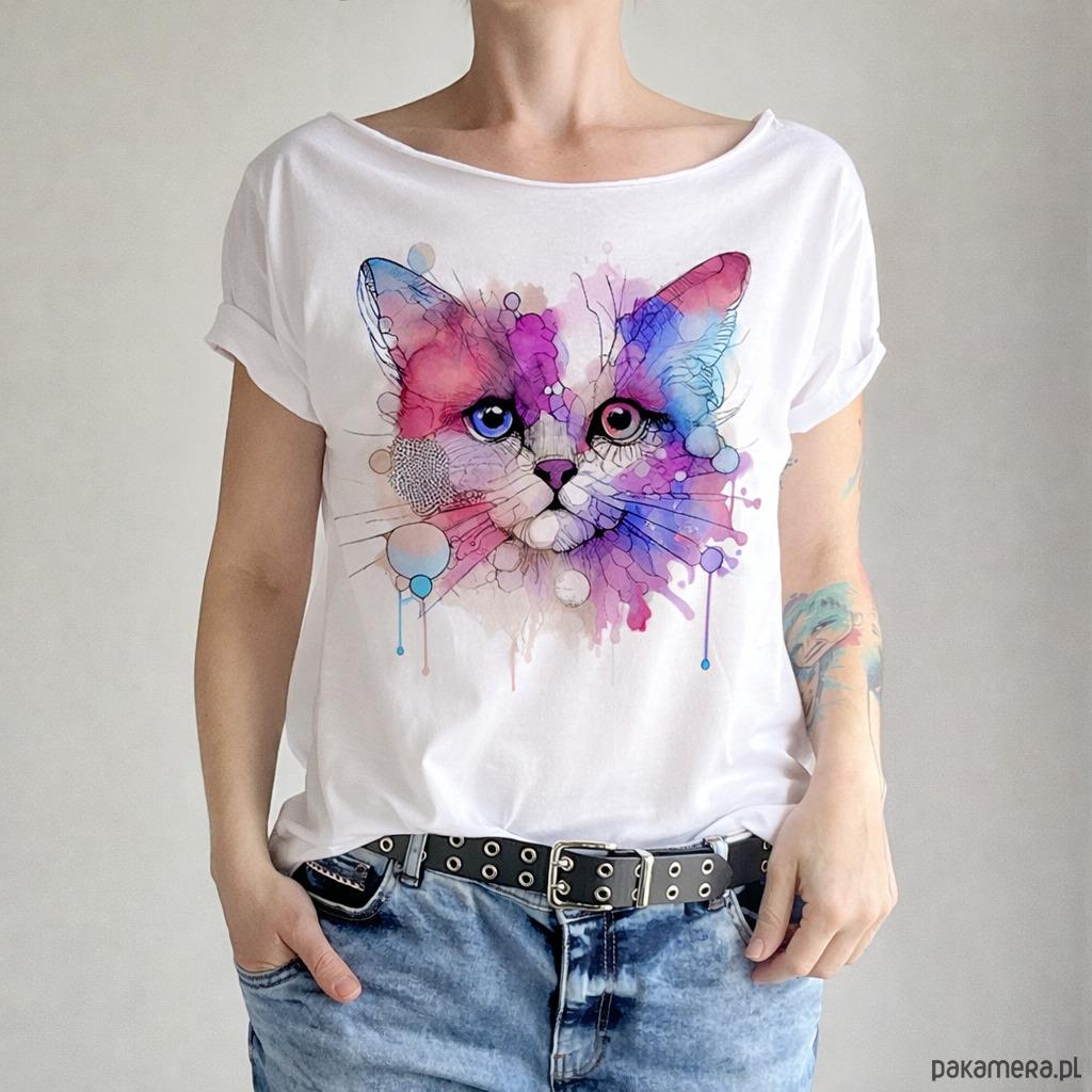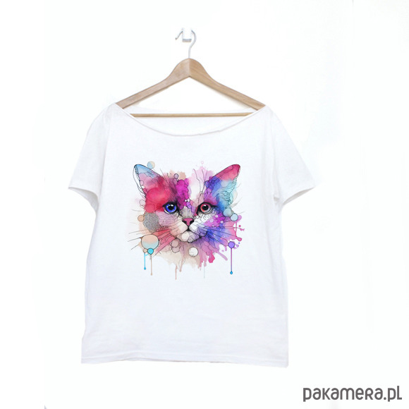 Kotek kreski akwarele Biały Oversize