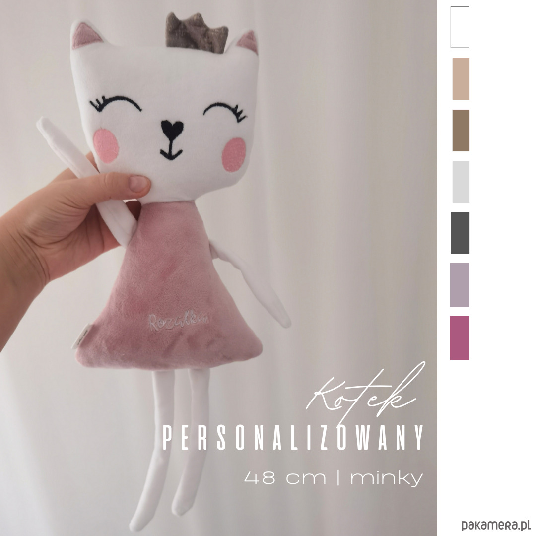 Kotka ozdabiamy dowolnymi dodatkami, może mieć muszkę, lub kokardkę, wianek, koronę, skrzydełka. Do każdego zlecenia podchodzimy indywidualnie. Możesz uczestniczyć w każdym etapie powstania kotka (ustalać z nami wszystkie szczegóły, tkaniny, materiały) lub napisać preferencje i zdać się na nasz gust i doświadczenie.