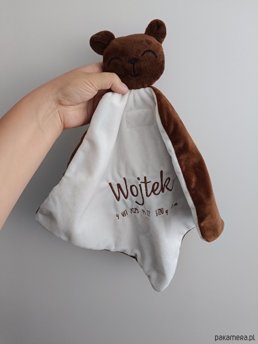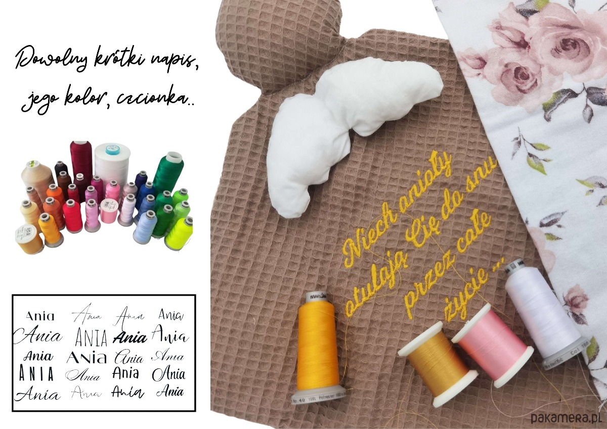 Idealny pomysł na prezent z okazji narodzin dziecka, Chrztu. Na przytulance haftujemy np. imię dziecka, metryczkę, datę chrztu. Pakujemy w ozdobny kartonik na którym możemy umieścić dowolną dedykację. Przytulankę możemy uszyć z minky, bwełny, muślinu wafla bawełnianego. Tkaniny, kolory, wzory, kolor haftu, napis , dedykacja - do uzgodnienia (prosimy o napisanie w wiadomości preferencji a my przygotujemy kilka propozycji do wyboru, w przypadku gdy wszystkie tkaniny są dostępne czas oczekiwanie może wynosić nawet 2 dni).