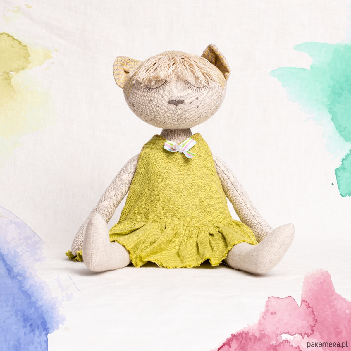 Kotek Pola Lniana lalka w sukience i sweterku L