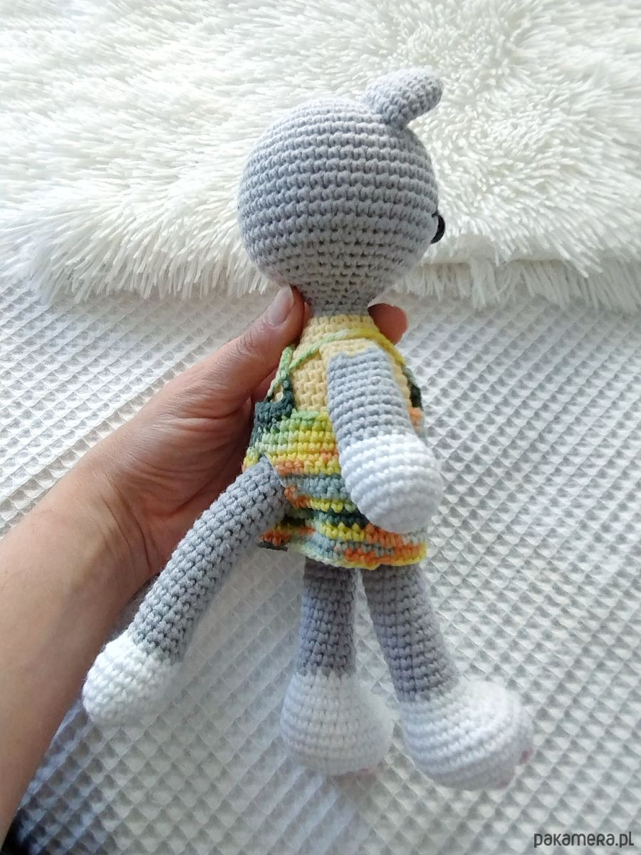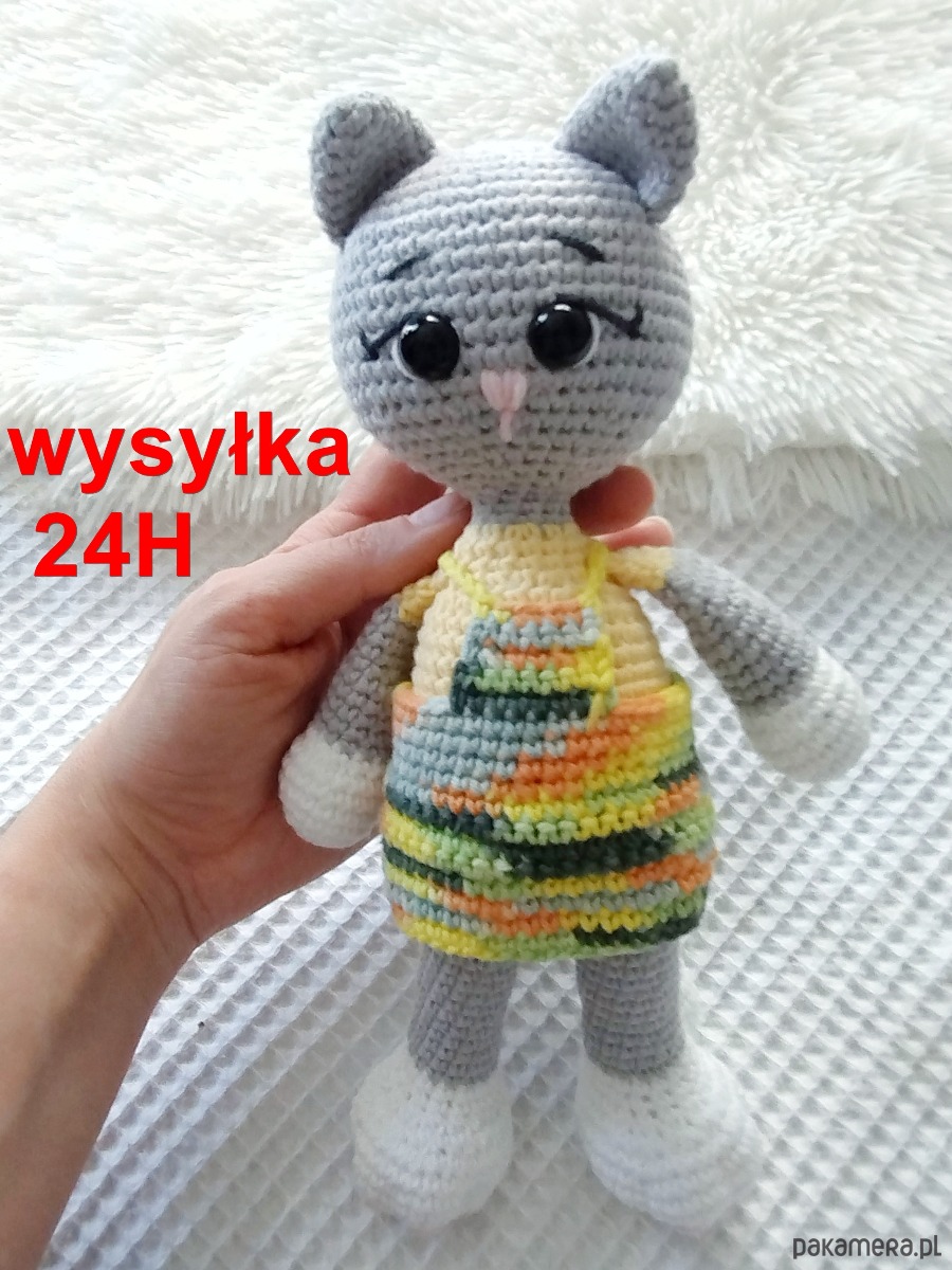 Szydełkowy kotka ze zdejmowaną sukienką to urocza zabawka dla każdego malucha.