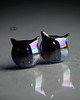 Efektowne kolczyki w formie sztyftów, ręcznie wykonane z delikatnej gliny kamionkowej, jednostronnie szkliwione brązowym szkliwem z tęczowym połyskiem, na sztyftach w kolorze srebrnym.długość elementu ceramicznego ok. 10mm, Polecam