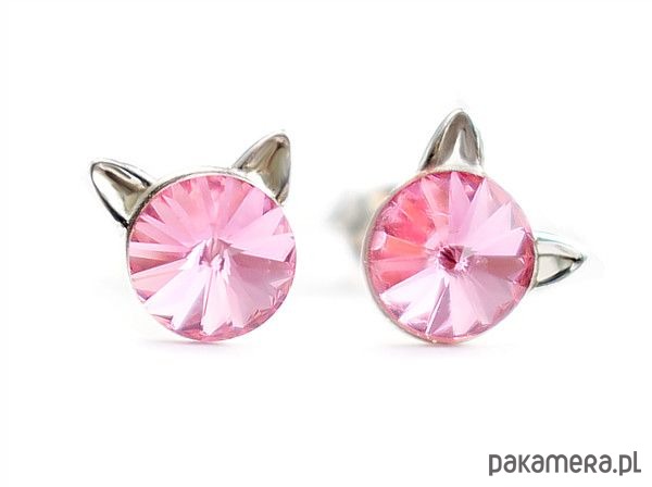 KOTY! Kolczyki - kryształy Swarovski - jasny róż