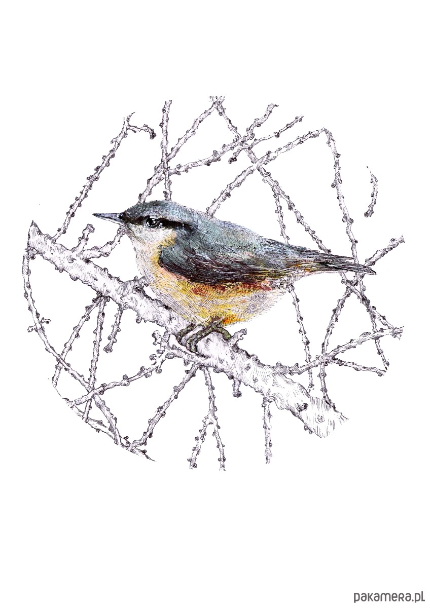 Kowalik- wydruk jednej z autorskich ptasich ilustracji inspirowanej światem rodzimej fauny