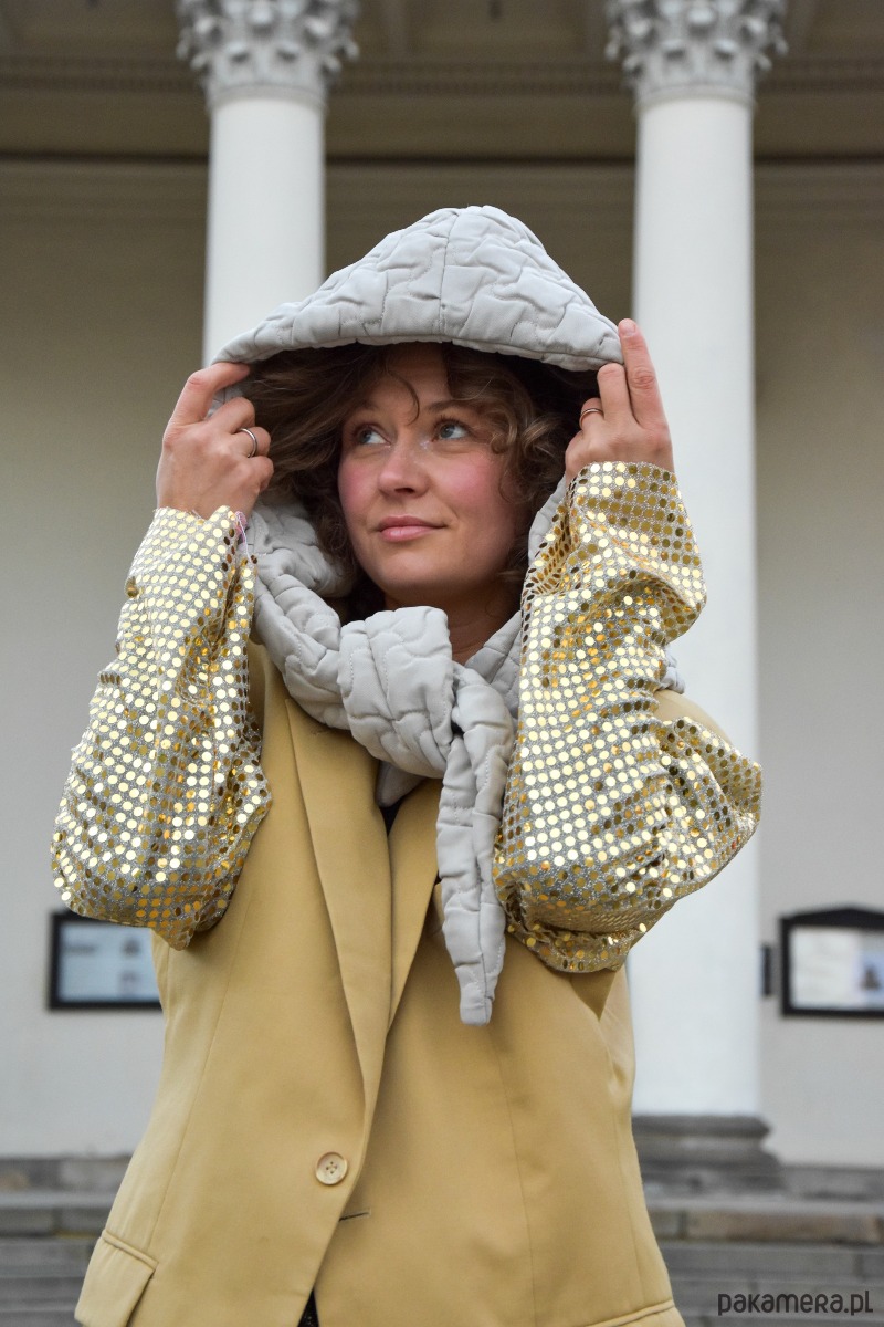 Ciepły, wygodny i funkcjonalny – dzięki wiązaniu doskonale chroni nie tylko głowę, ale także szyję, zastępując szalik. Idealny na chłodniejsze dni.