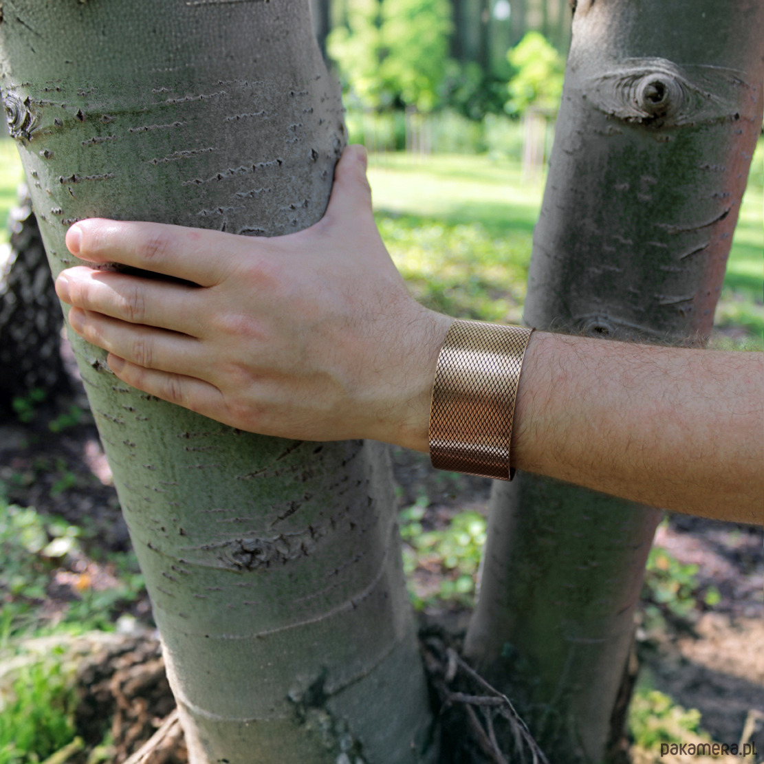 Szeroka, przykuwająca uwagę bransoleta o ciekawej fakturze. Dzięki prostej formie można ją założyć na różne okazje, zarówno do swobodnych jak i eleganckich stylizacji. Doskonałe nadaje się też na prezent.