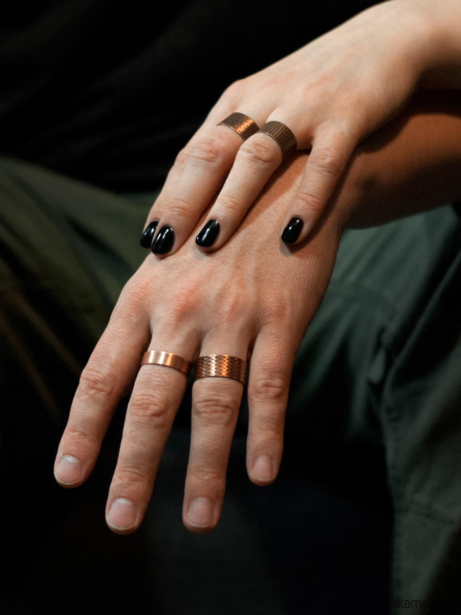 Szeroki pierścionek z miedzi o ciekawej fakturze.
