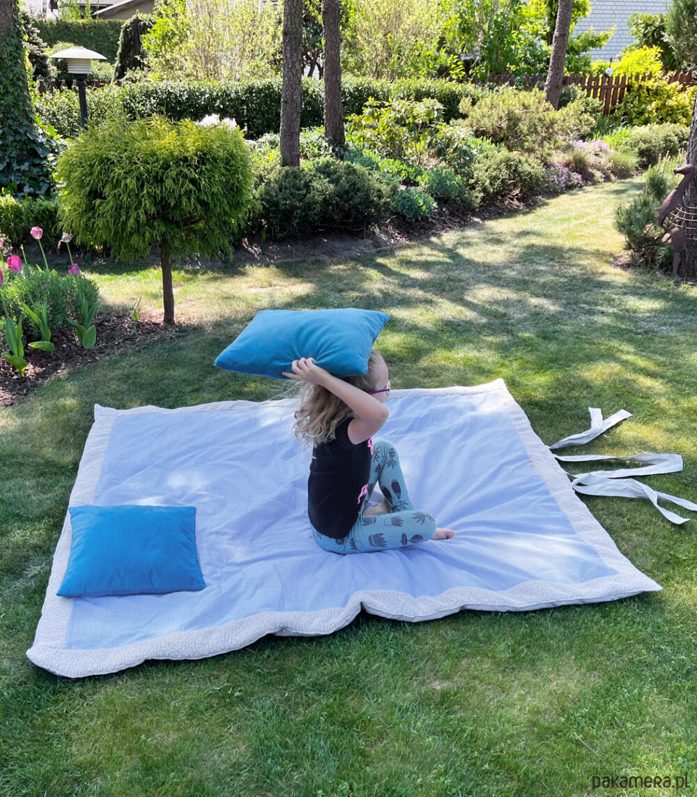 Wyjątkowa, miękka mata piknikowa. Idealna na zarówno na wypad za miasto, na plażę jak i do ogrodu. Może również służyć jako mata do zabawy i nauki raczkowania w domu ponieważ wypełniona jest lekkim ociepleniem (które świetnie izoluje od zimnego podłoża).