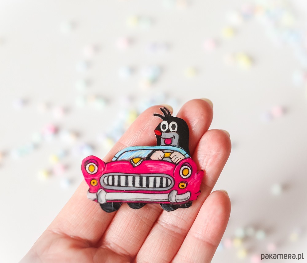 Piękna broszka ręcznie rysowana, zabezpieczona lakierem ekologicznym. Powierzchnia broszki jest błyszcząca.