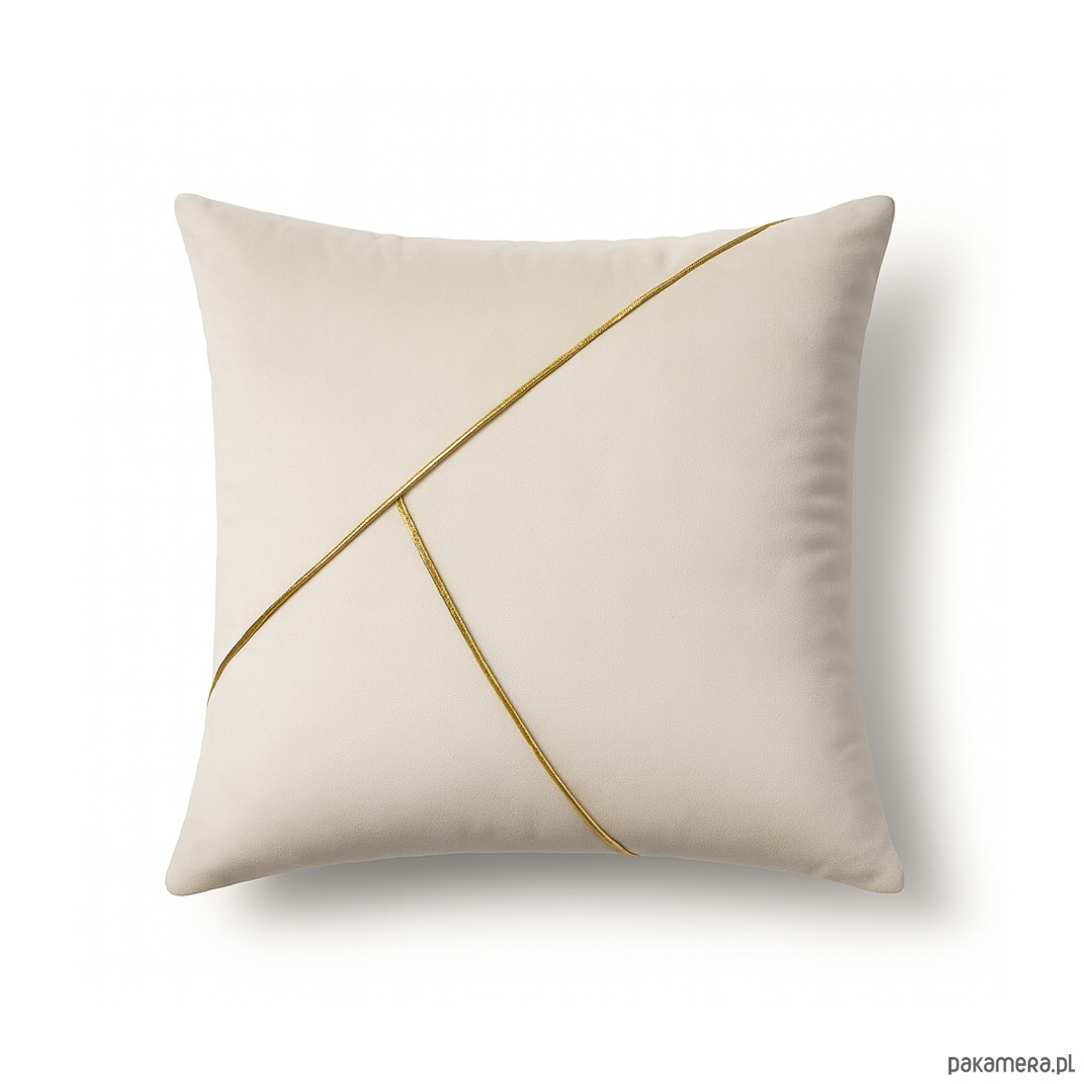 Kremowa poszewka na poduszkę ze złotą wstawką Chic