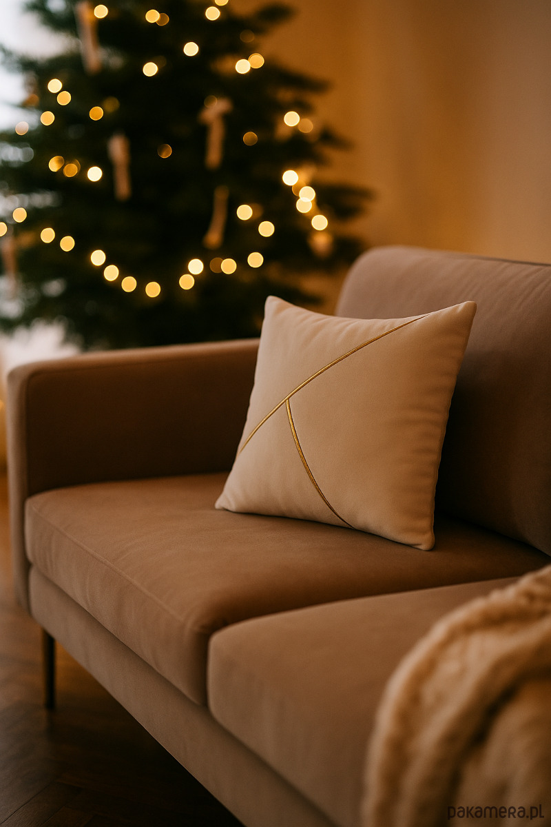 Piękna, miła w dotyku poszewka w kolorze kremowym ze złotym akcentem. Idealnie sprawdzi się w sypialni, czy salonie. Sprawdzi się jako dekoracja na święta i na co dzień.