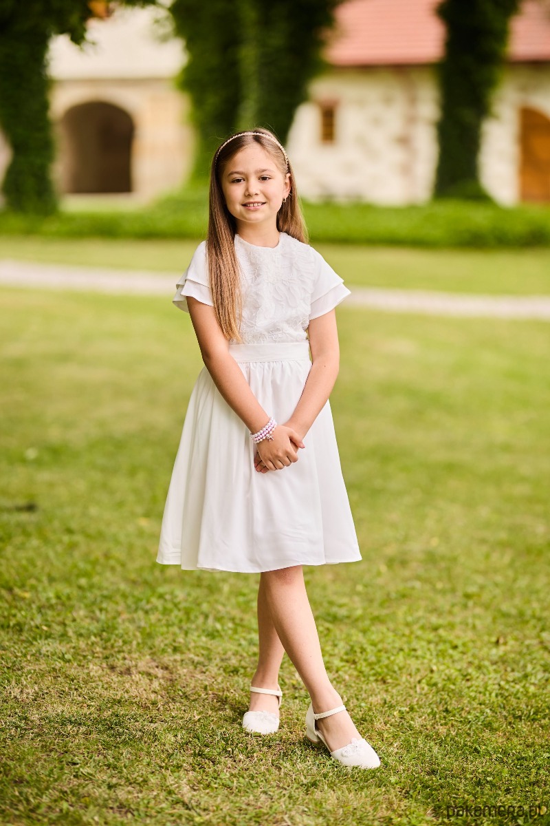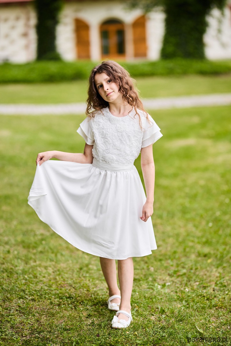 Kremowa sukienka dla dziewczynki z koronkową górą Leonia
