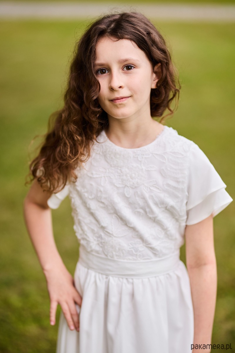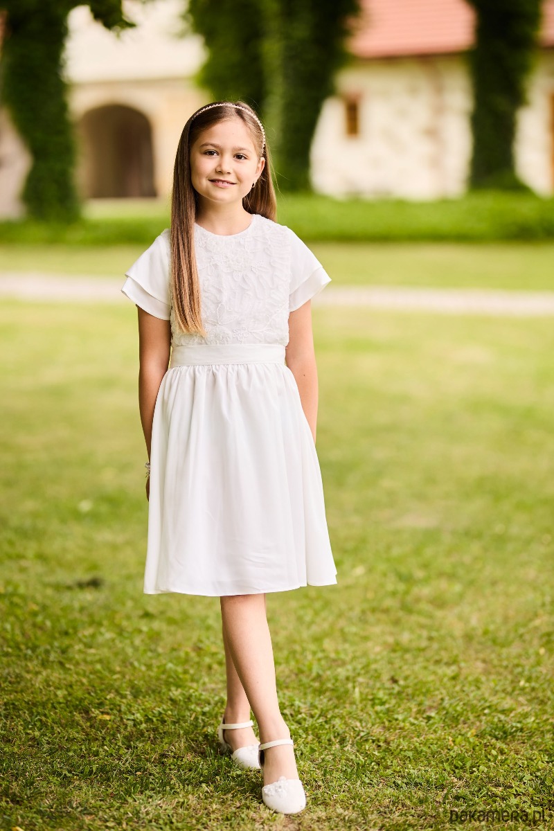 Elegancka i subtelna sukienka dla dziewczynek, stworzona z myślą o wyjątkowych chwilach. Góra wykonana z delikatnej, misternie zdobionej koronki pięknie komponuje się ze zwiewnym, lekko rozkloszowanym dołem, który nadaje całości lekkości i dziewczęcego uroku. Model w ponadczasowym, kremowym kolorze doskonale sprawdzi się podczas uroczystości rodzinnych, przyjęć, komunii, wesel czy innych ważnych wydarzeń. Sukienka została zaprojektowana i uszyta w naszej pracowni dbałością o każdy detal oraz komfort noszenia. Starannie dobrane materiały są przyjemne dla skóry i zapewniają swobodę ruchów.