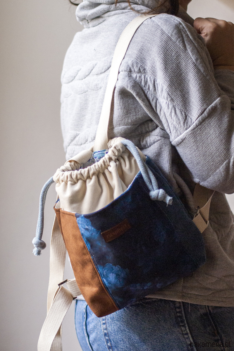 Mały damski plecak typu worek z kominem.