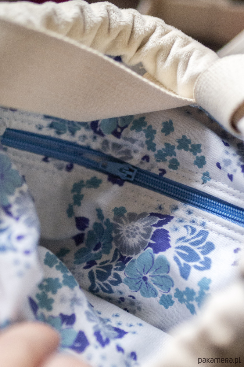 Plecaczek jest nieduży (wielkość to około 28x26cm), natomiast ze względu na duże zaszewki na dnie - dosyć pojemny.