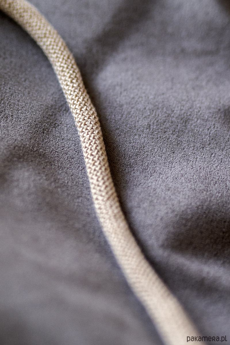 Plecakotorba worek 2w1 wykonana z tkaniny typu welur w kolorze kremowym w połączeniu z szarym nubukiem.