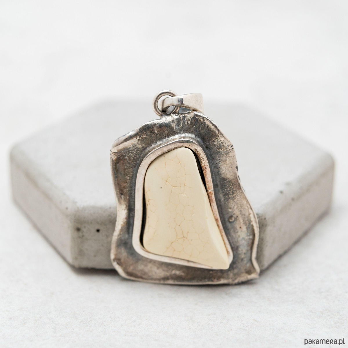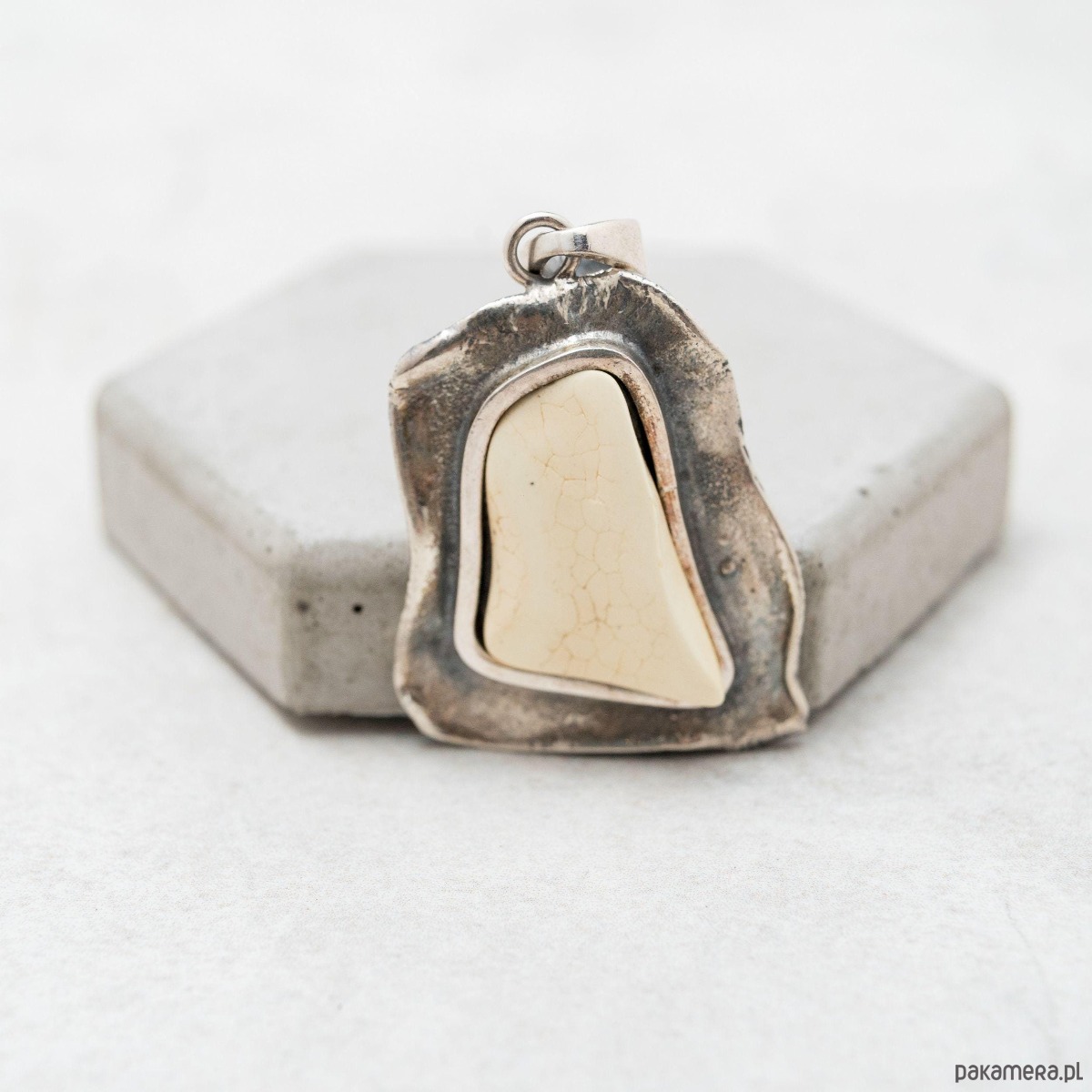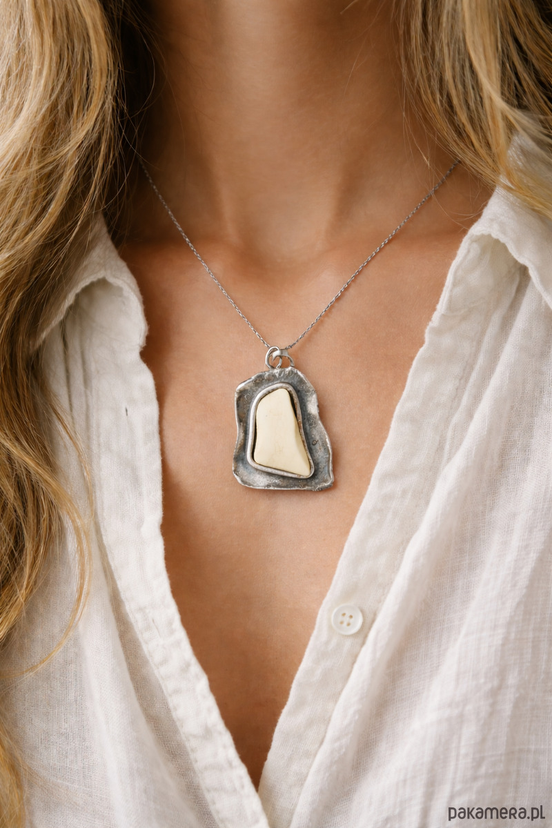 Kremowy bursztyn surowy osadzony w srebrze — elegancki, naturalny wisiorek, łączący surowy urok kamienia z dopracowanym wykończeniem. Centralnym elementem jest autentyczny, kremowo-biały bursztyn bałtycki o niepowtarzalnej strukturze i delikatnej fakturze. Kamień został ręcznie osadzony w teksturowanej oprawie z wysokiej jakości srebra próby 925, które podkreśla organiczny charakter biżuterii.