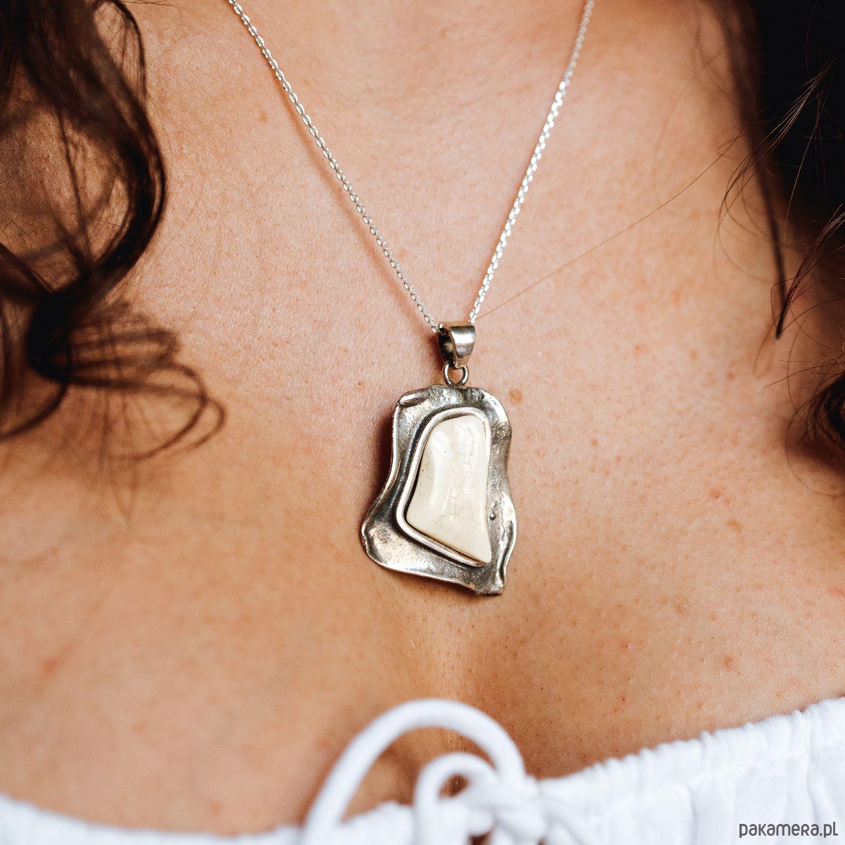 - Materiały: naturalny bursztyn bałtycki (kremowy/biały), srebro próby 925
