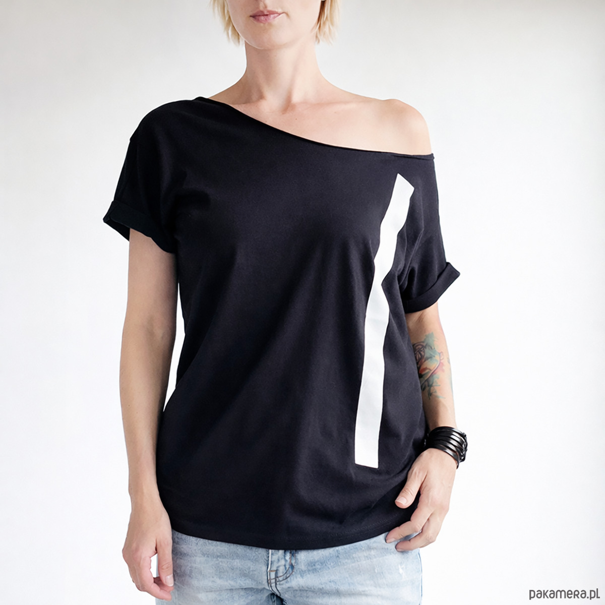 Kreska biała przesunięta na czarnym Oversize