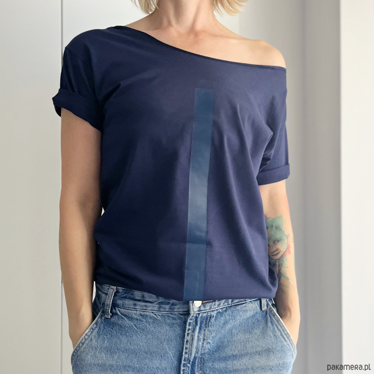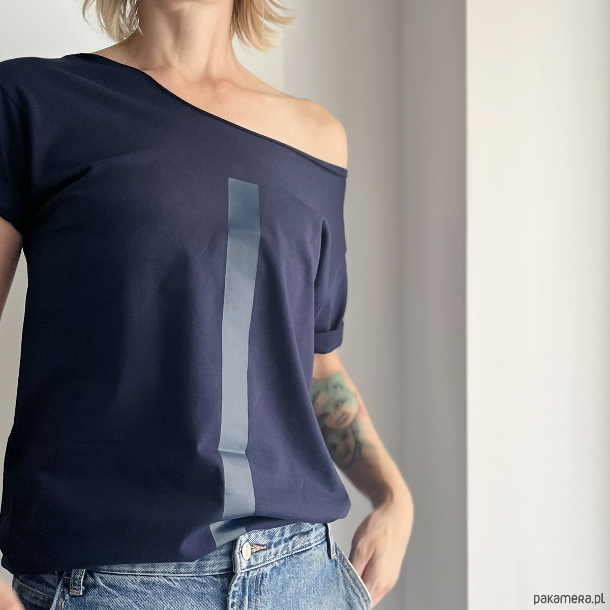 Koszulka, 100% bawełny, luźna, krótkie rękawki. Surowe, cięte wykończenie dekoltu.